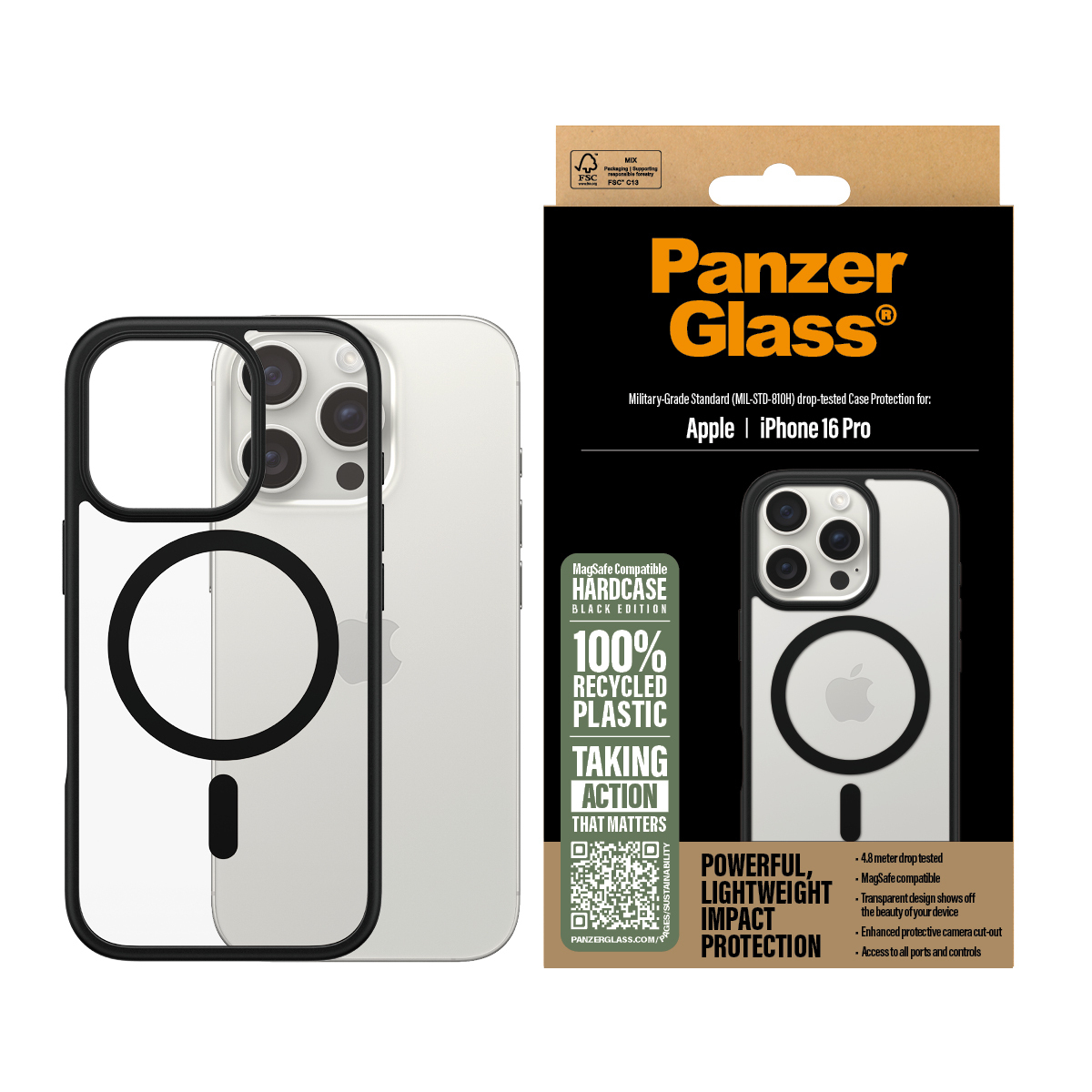 PanzerGlass ® HardCase Transparent w. Black MagSafe & Frame iPhone 16 Pro, Housse, Apple, Apple - iPhone 16 Pro, Noir
