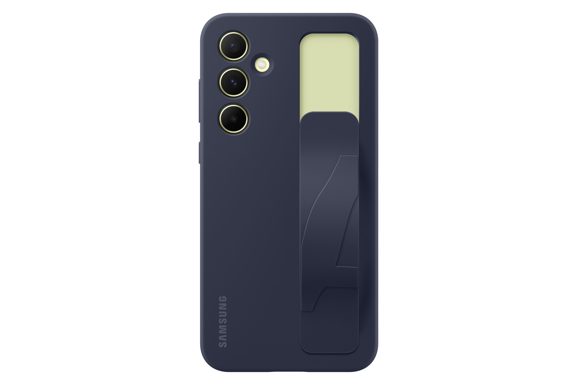 La coque avec support cache un atout de taille : une sangle en silicone qui se déroule pour offrir une prise en main ou un pied de support. Disponible en bleu nuit ou en gris.