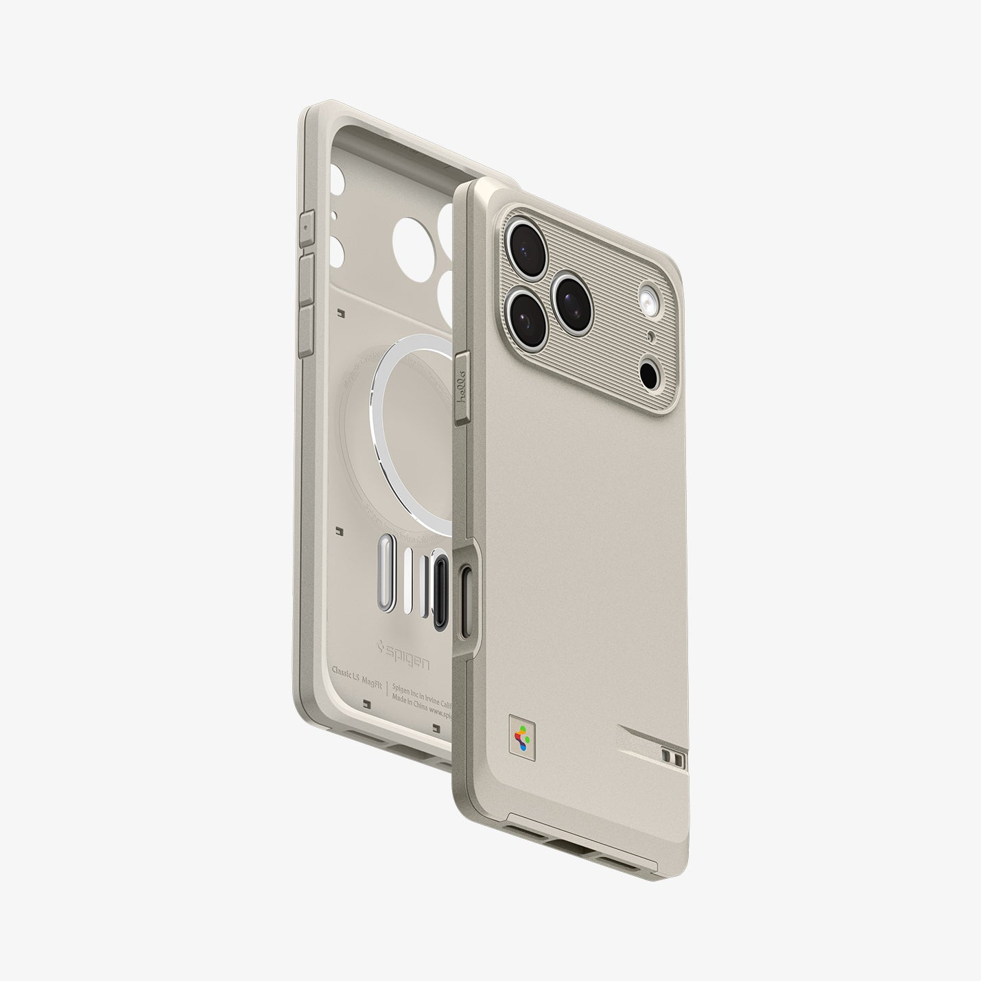 Spigen Classic LS (Mag Fit). Type d'étui: Housse, Compatibilité de marque: Apple, Compatibilité: iPhone 17 Pro Max, Taille maximale de l’écran: 17,5 cm (6.9"), Coloration de surface: Monochromatique, Couleur du produit: Couleur de la pierre