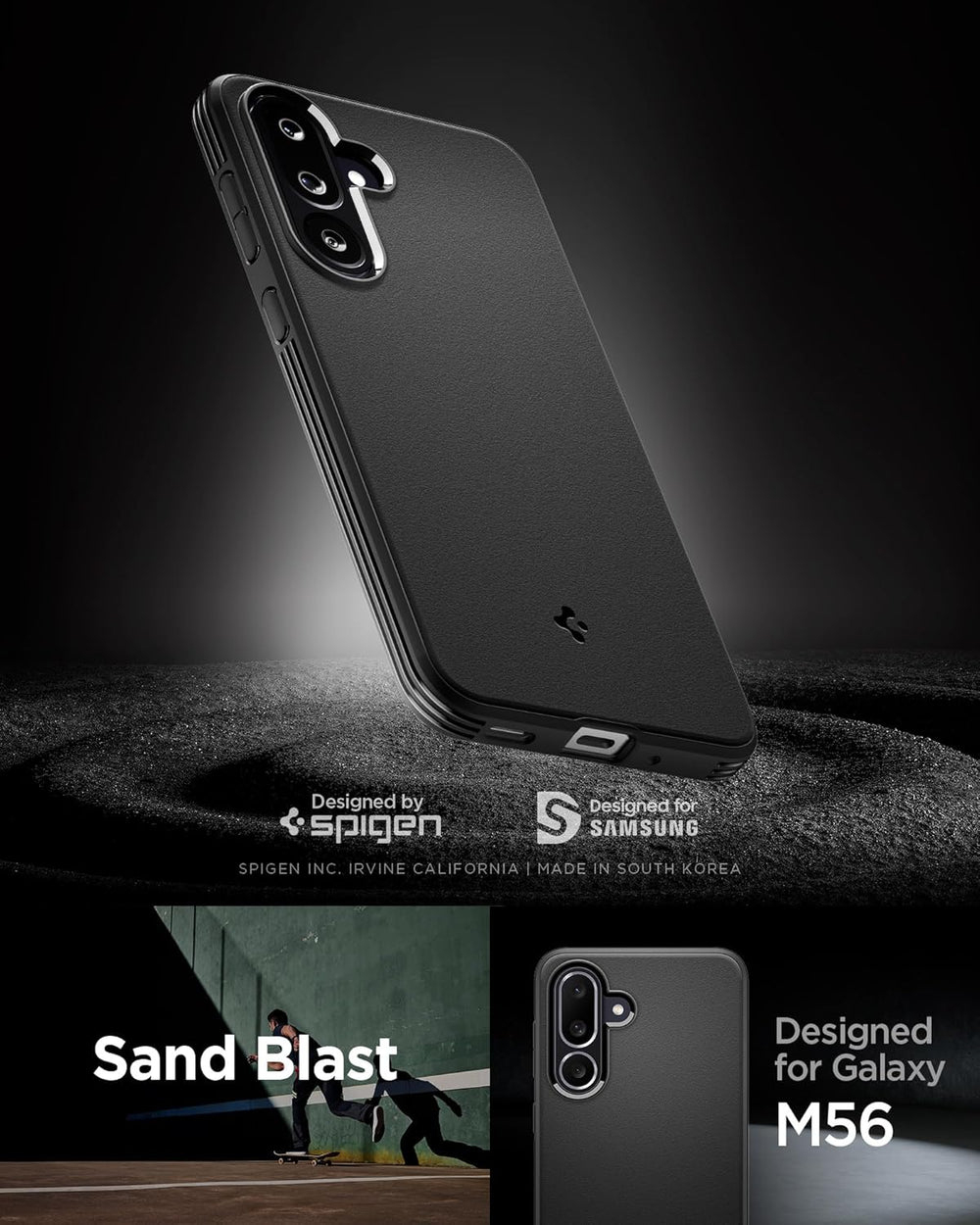 Spigen Essential Sand Blast. Type d'étui: Housse, Compatibilité de marque: Samsung, Compatibilité: Galaxy M56 5G / F56 5G, Taille maximale de l’écran: 17 cm (6.7"), Coloration de surface: Monochromatique, Couleur du produit: Noir