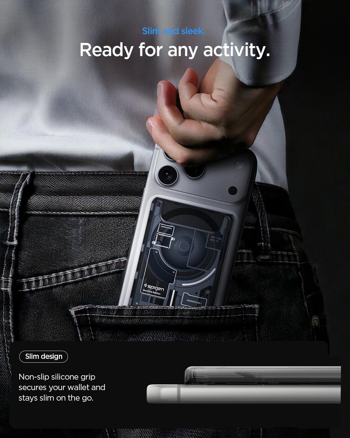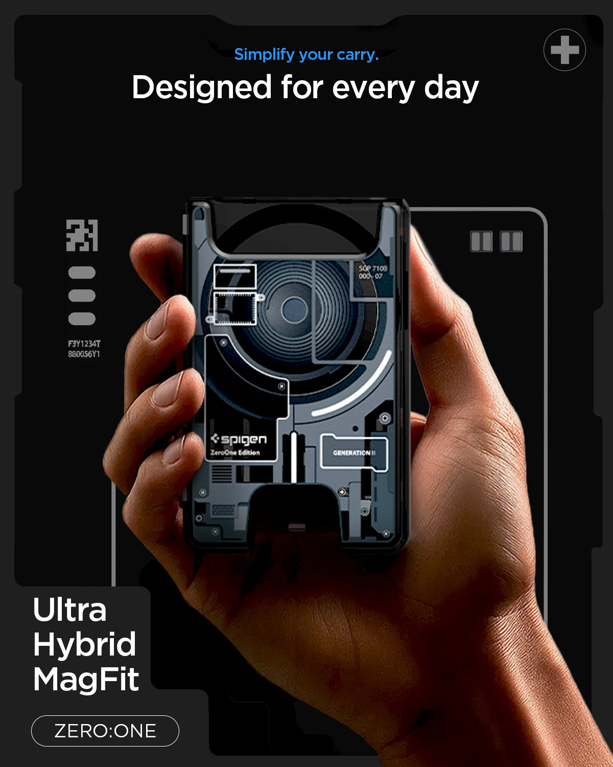 Spigen Ultra Hybrid Zero One V2, Support de carte, Noir, Gris, Polycarbonate (PC), Polyuréthane thermoplastique (TPU), Apple, Apple - iPhone 12 or newer or with MagFit cases, Google - Pixel MagFit cases, 1 pièce(s)