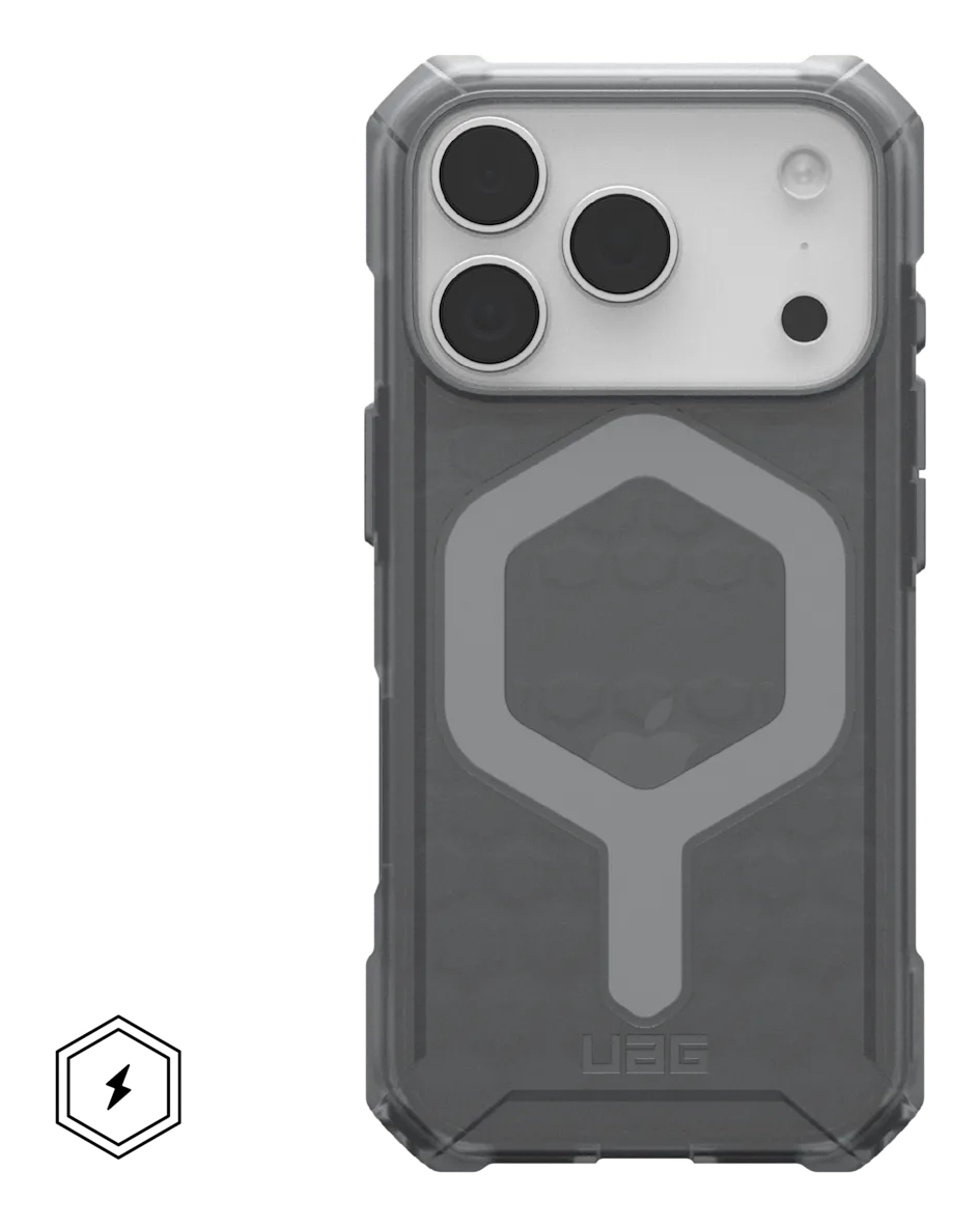 Urban Armor Gear 114540113131. Type d'étui: Housse, Compatibilité de marque: Apple, Compatibilité: iPhone 17 Pro, Taille maximale de l’écran: 16 cm (6.3"), Coloration de surface: Monochromatique, Couleur du produit: Cendre