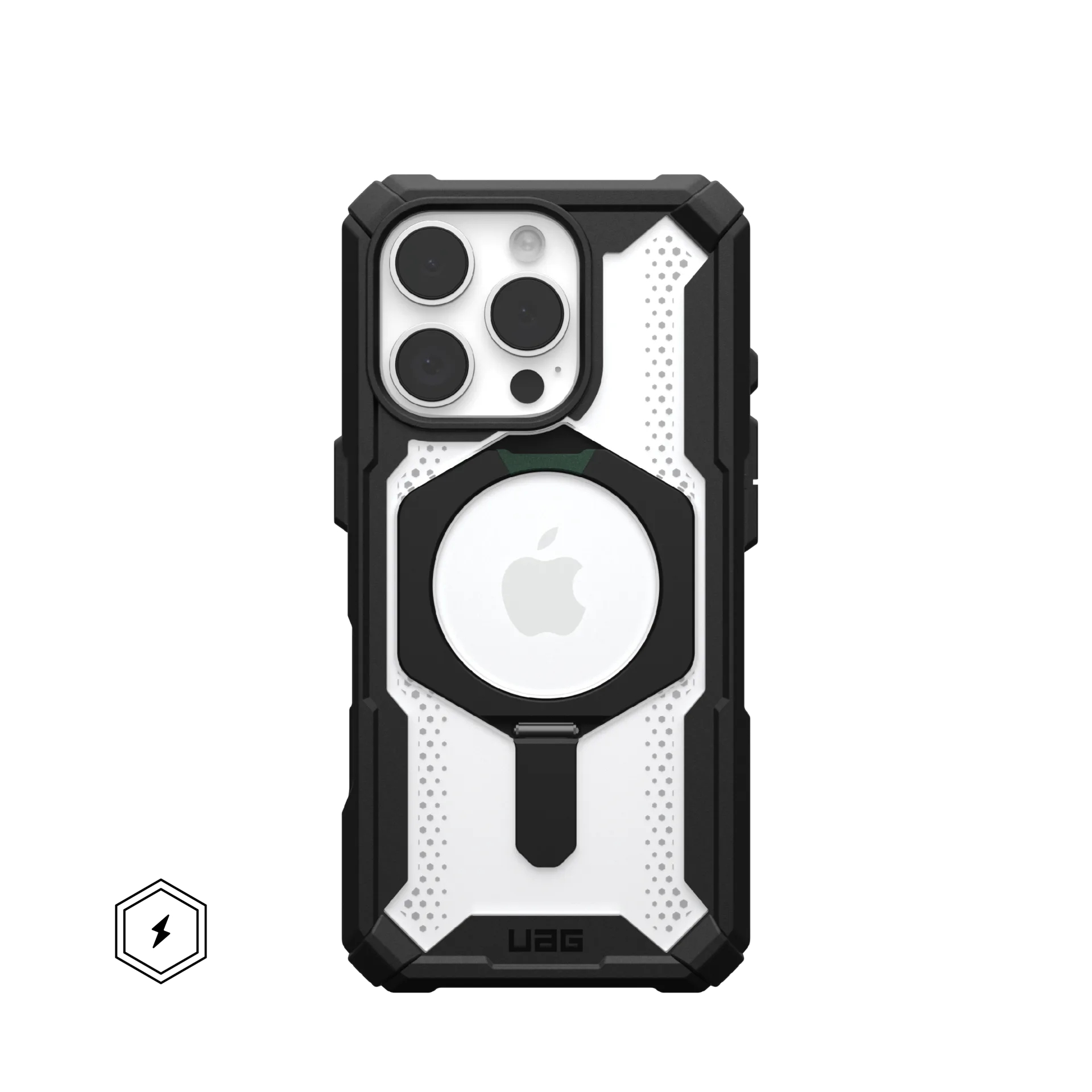 Urban Armor Gear Plasma XTE. Type d'étui: Housse, Compatibilité de marque: Apple, Compatibilité: iPhone 16 Pro, Taille maximale de l’écran: 16 cm (6.3"), Coloration de surface: Monochromatique, Couleur du produit: Noir, Transparent, Support de bureau