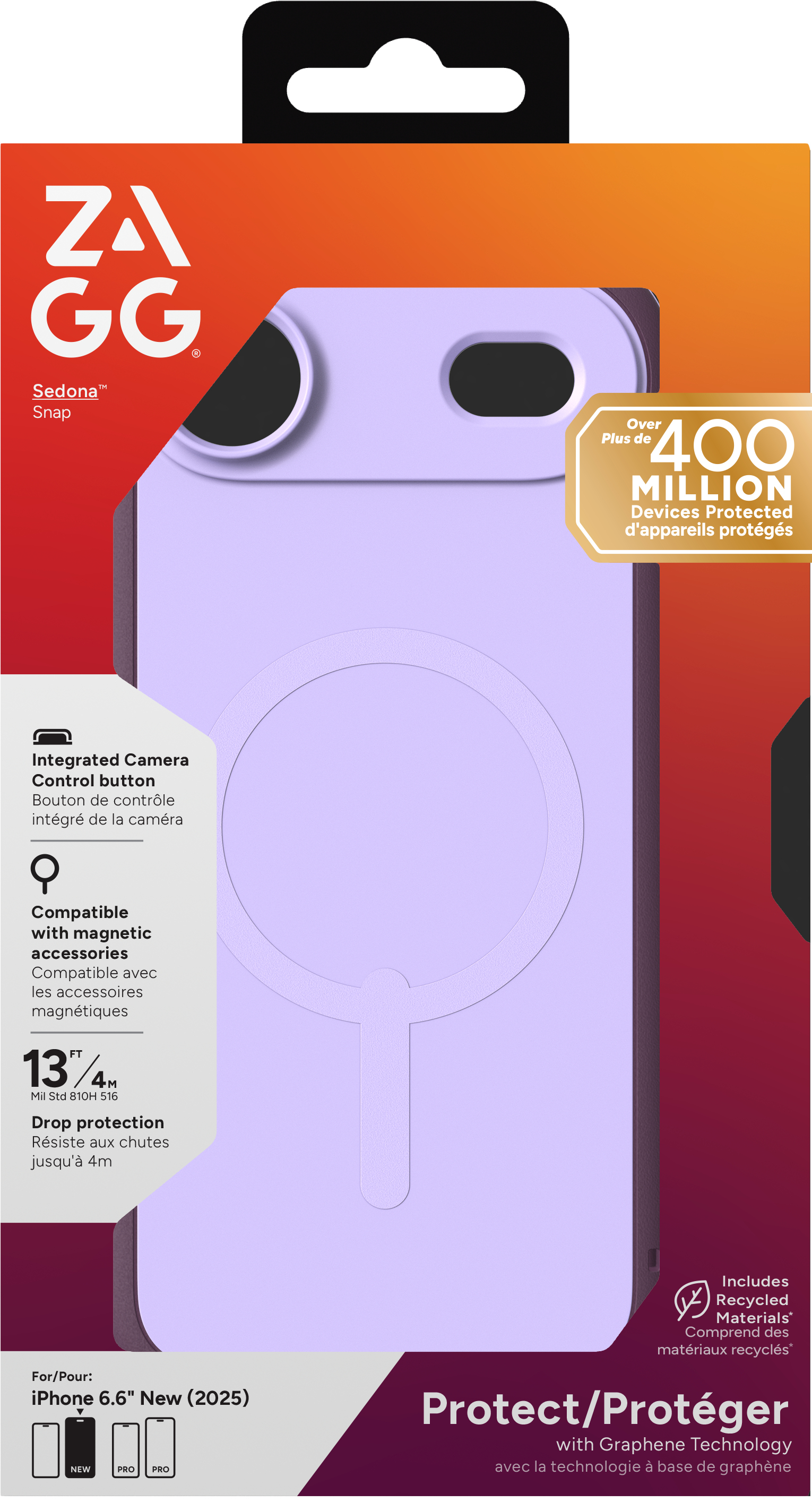 ZAGG Sedona Snap. Type d'étui: Housse, Compatibilité de marque: Apple, Compatibilité: iPhone 17 Air, Taille maximale de l’écran: 16,5 cm (6.5"), Couleur du produit: Violet