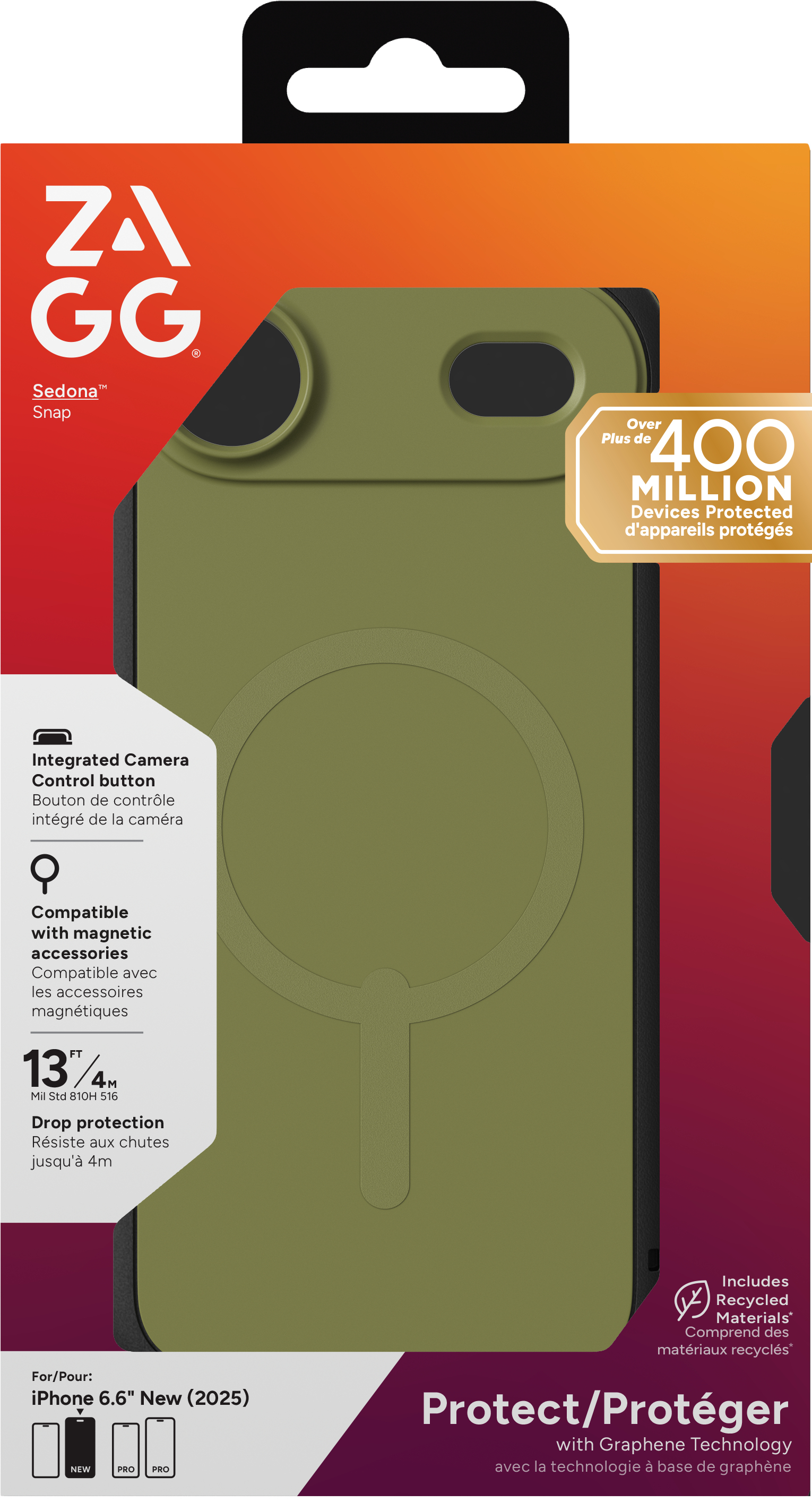 ZAGG Sedona Snap. Type d'étui: Housse, Compatibilité de marque: Apple, Compatibilité: iPhone 17 Air, Taille maximale de l’écran: 16,5 cm (6.5"), Couleur du produit: Vert