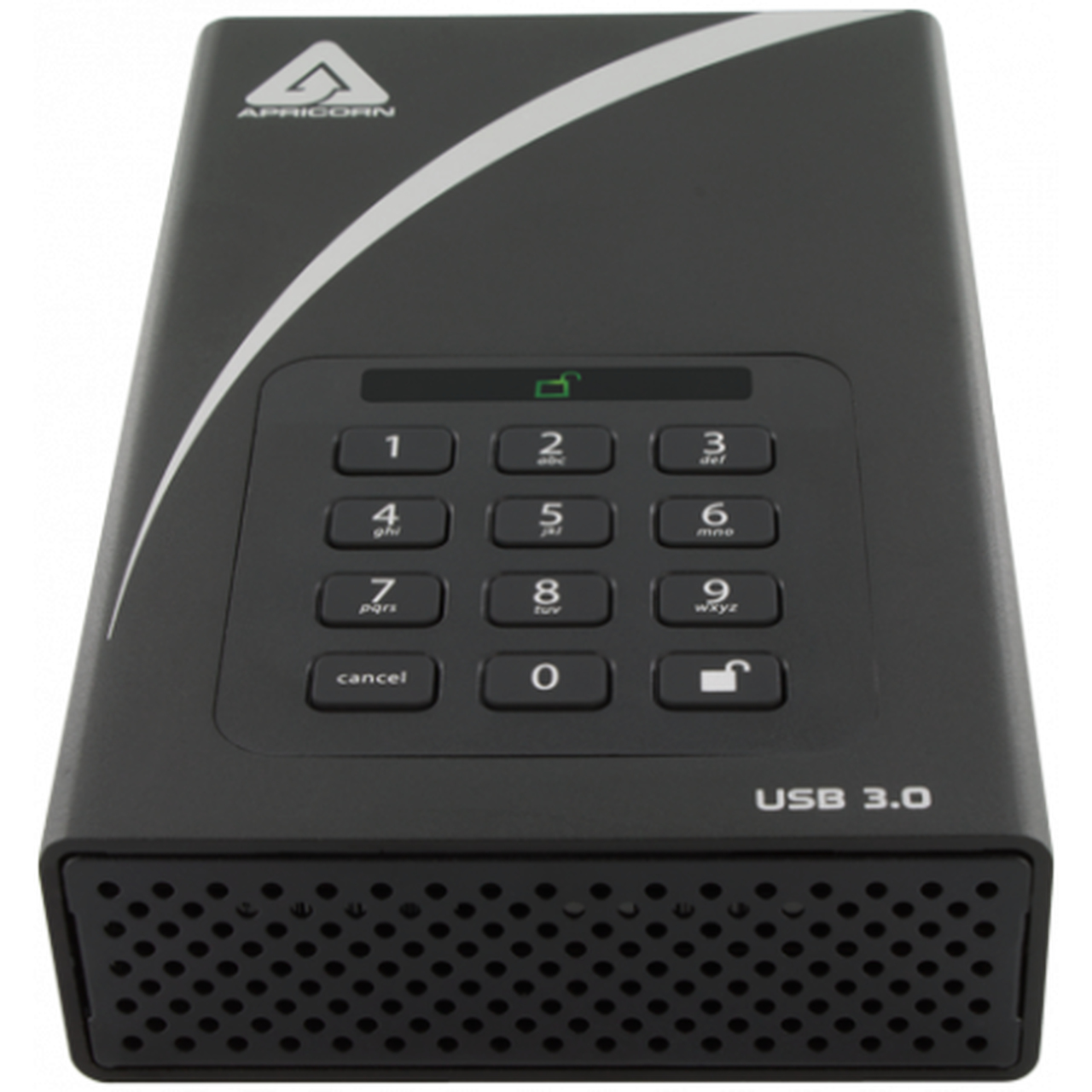 Apricorn Aegis Padlock DT. Capacité disque dur: 12 To. Version USB: 2.0/3.2 Gen 1 (3.1 Gen 1). Couleur du produit: Noir