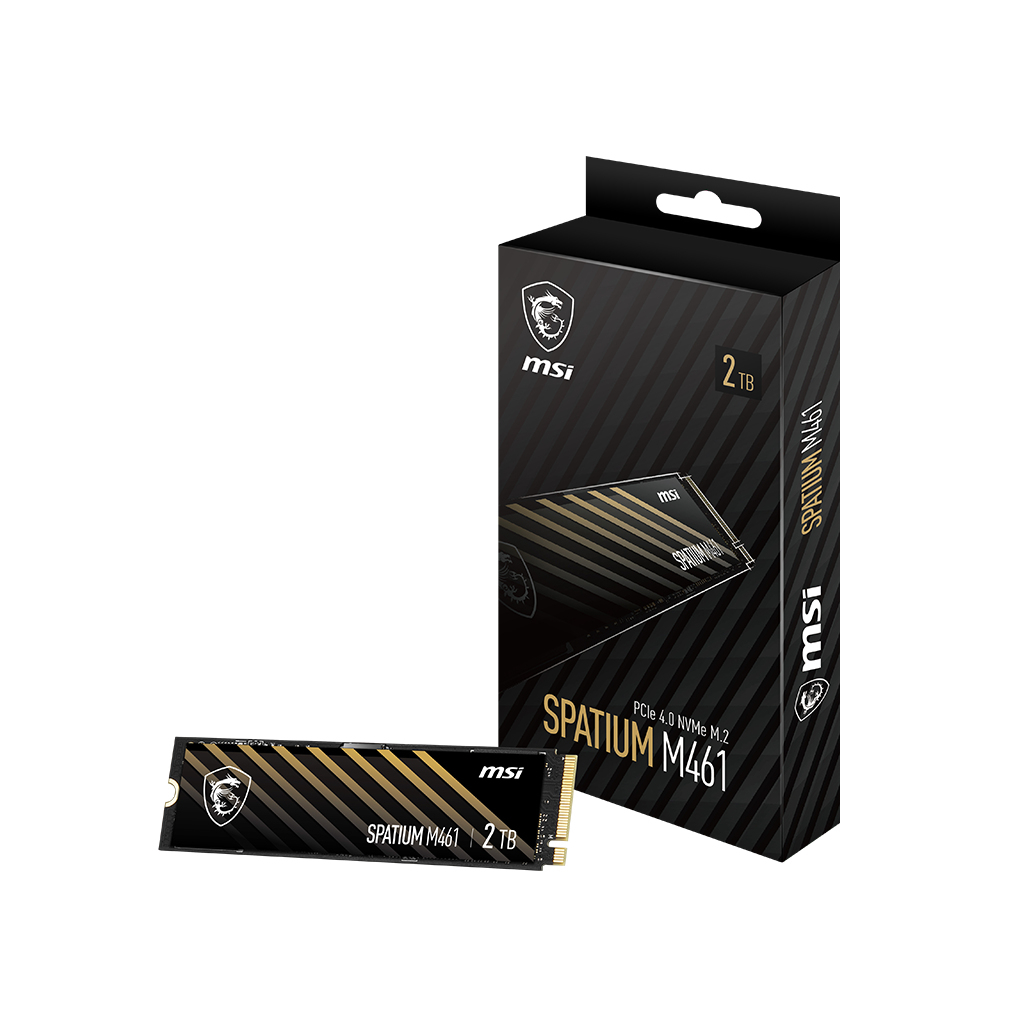 MSI Spatium M461. Capacité du Solid State Drive (SSD): 2000 Go, Facteur de forme SSD: M.2, Vitesse de lecture: 5000 Mo/s, Vitesse d'écriture: 4200 Mo/s, composant pour: PC/ordinateur portable