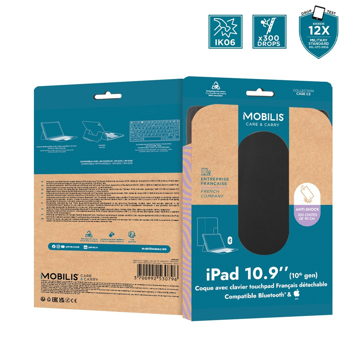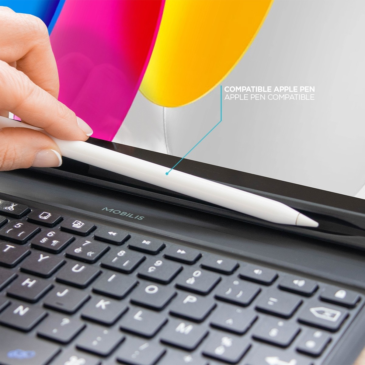 Cette coque résistante iPad 10.9'' avec clavier Bluetooth® français détachable est spécialement conçue pour l'iPad 10.9''. Elle comporte un emplacement permettant de ranger le stylet MOBILIS® (ref. 001090) ou tout autre stylet tactile.