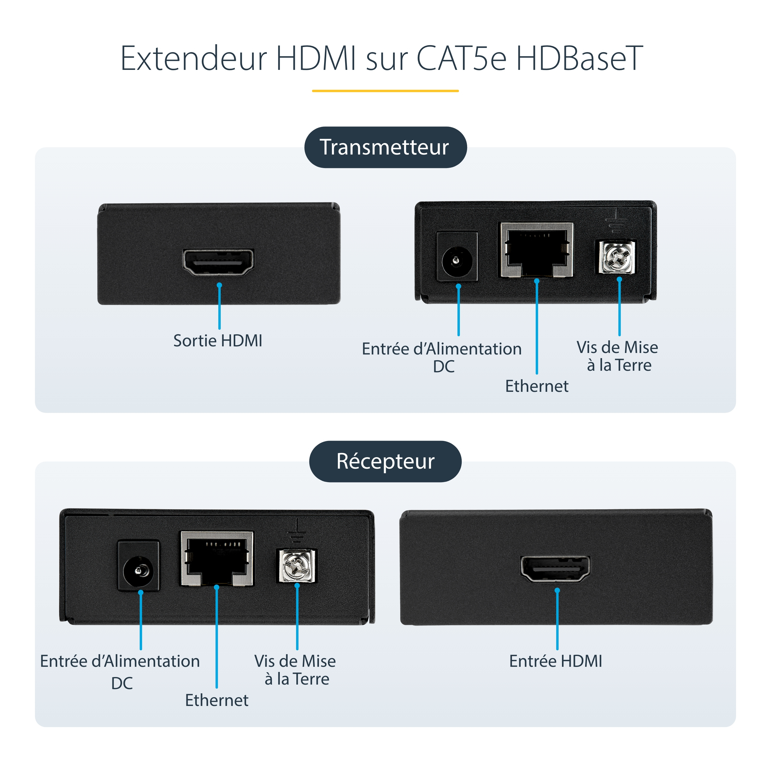 StarTech.com Extendeur HDMI 4K sur Cat5e / 6 - Prolongateur HDBaseT via RJ45 avec Power over Cable - 70 m (ST121HDBTE)