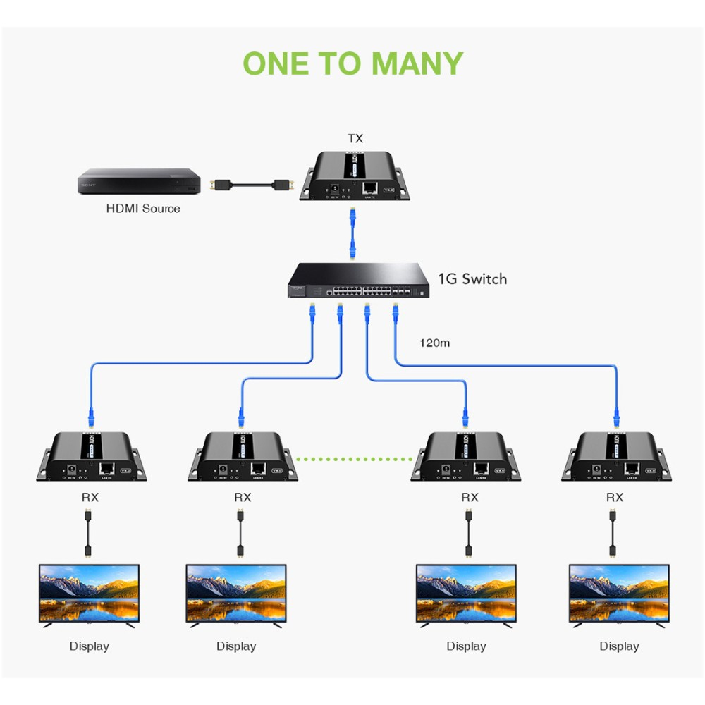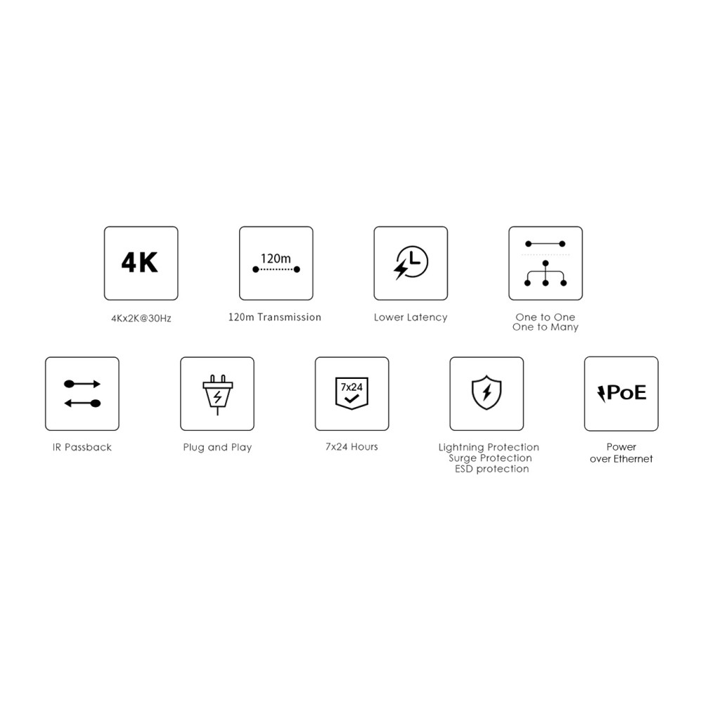 Techly IDATA EXTIP-3834KP7, 3840 x 2160 pixels, Émetteur et récepteur AV, 120 m, Avec fil, Noir, HDCP
