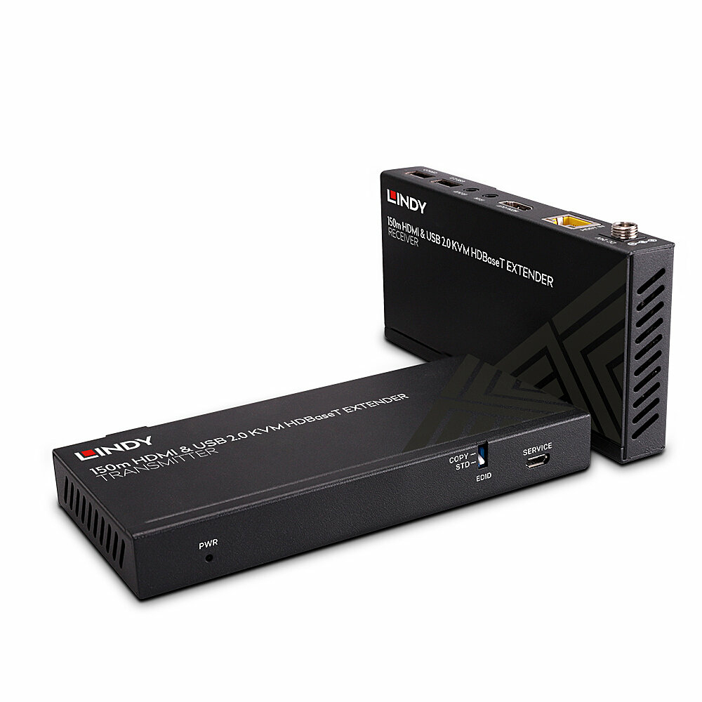 Lindy Extender KVM Cat.6 HDBaseT 150m HDMI 4K60, USB 2.0 & IR, Émetteur et récepteur, Avec fil, 150 m, Cat6, 3840 x 2160 pixels, 60 Hz