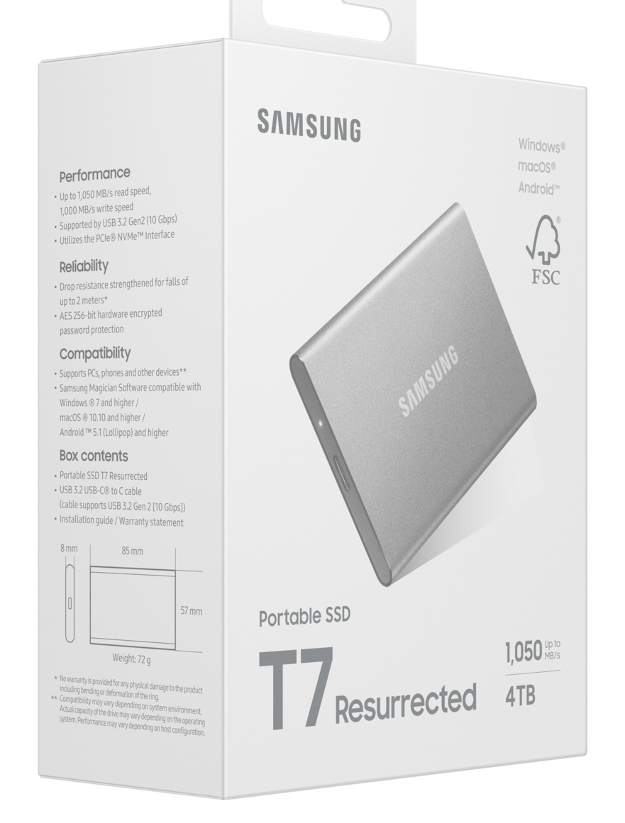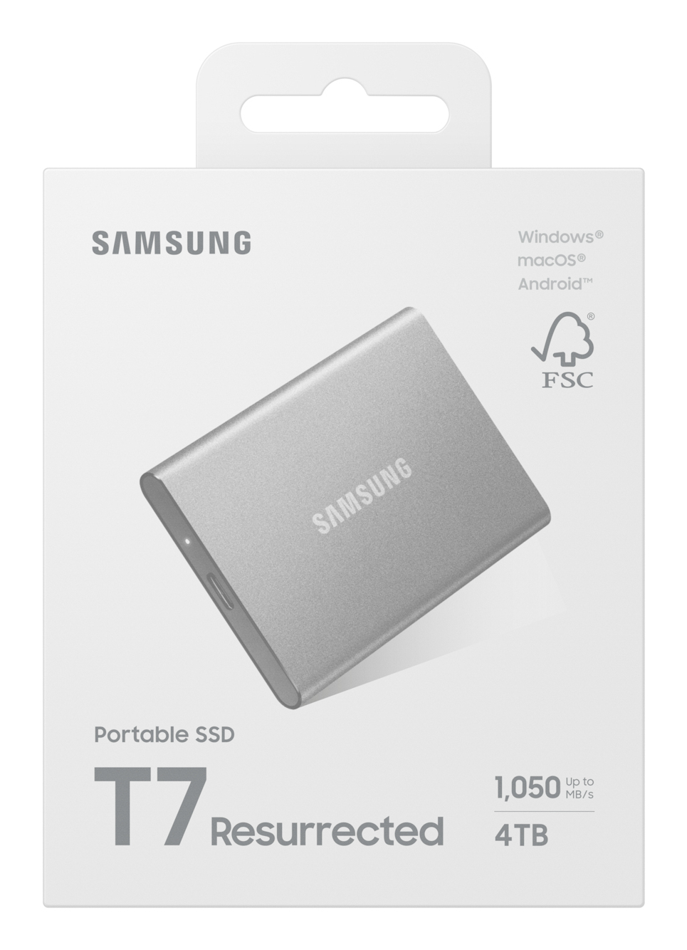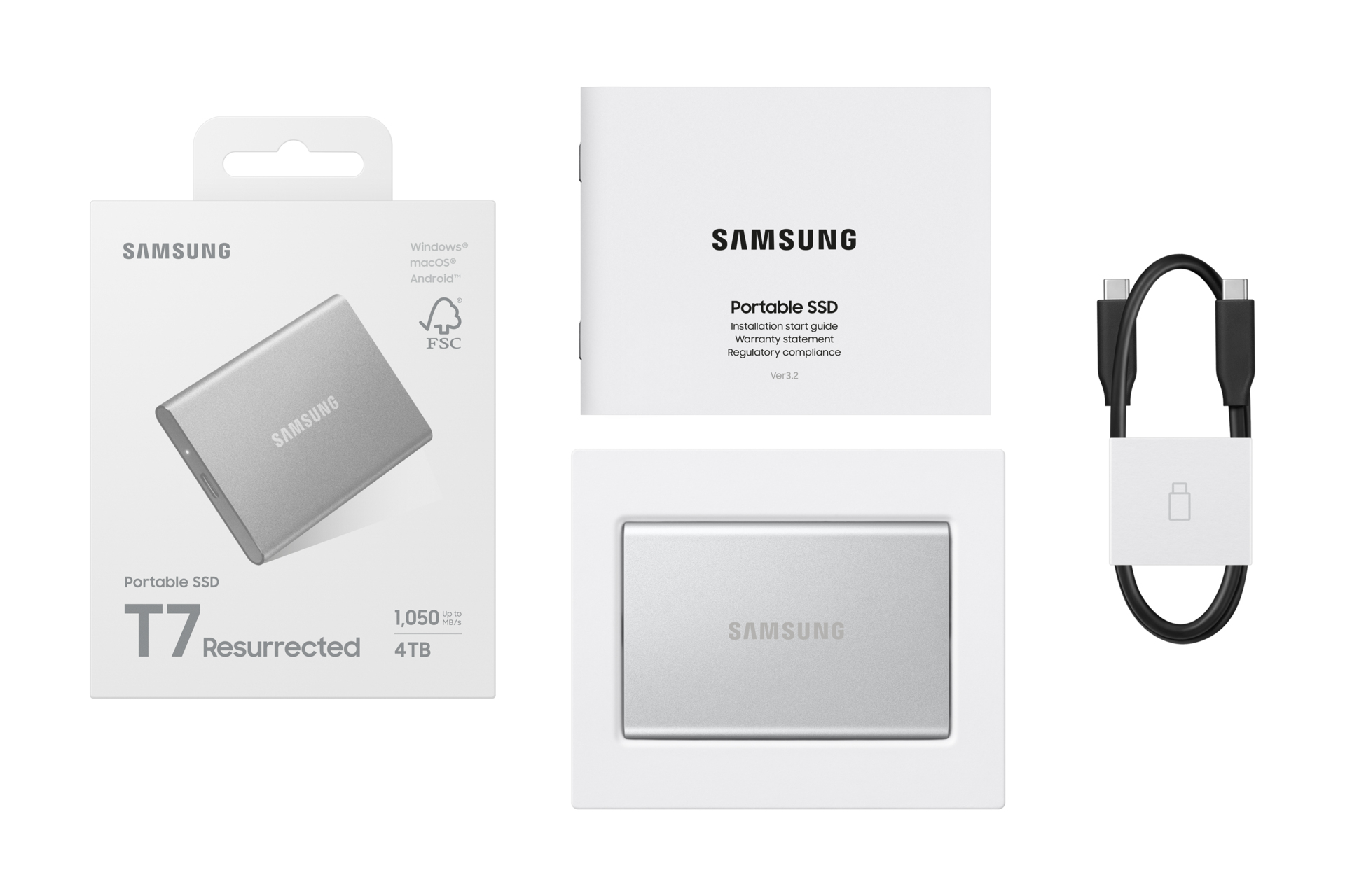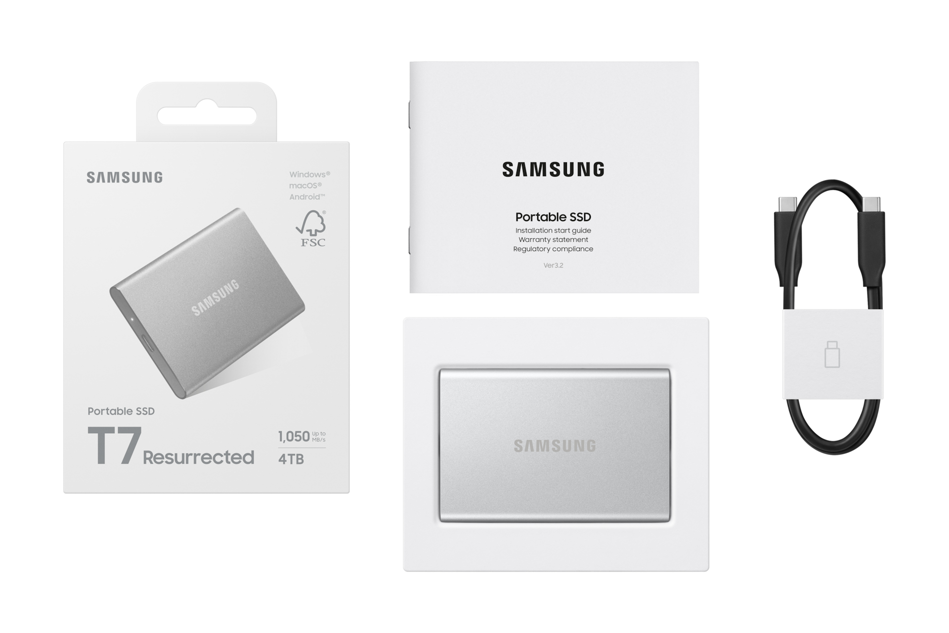 Samsung SSD Externe T7 Resurrected 4To, 4 To, USB Type-C, 3.2 Gen 2 (3.1 Gen 2), 1050 Mo/s, 10 Gbit/s, Argent