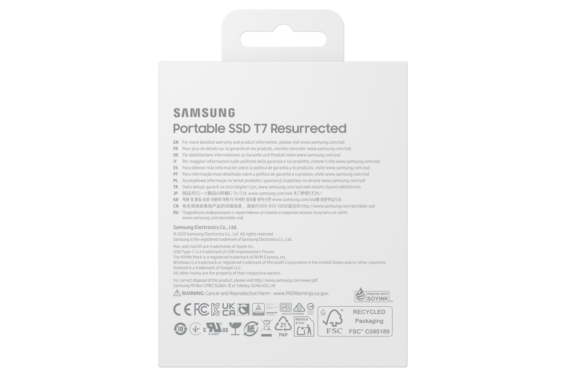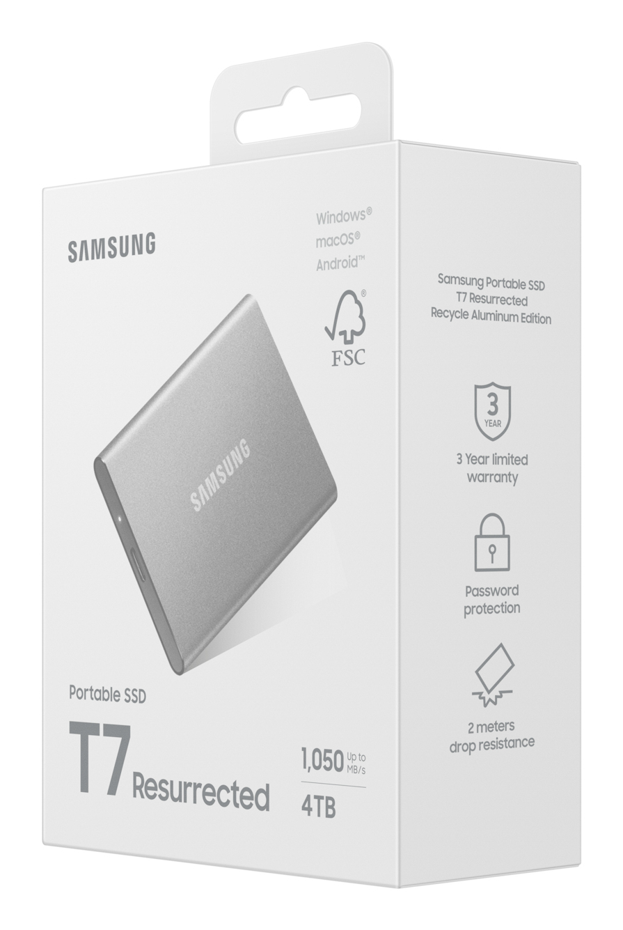 Le T7 Resurrected est un SSD externe conçu majoritairement avec de laluminium recyclé. Cest nest pas un simple objet. Il sagit dune nouvelle vision. Cest un produit conçu avec ingéniosité qui sadapte à votre mode de vie.