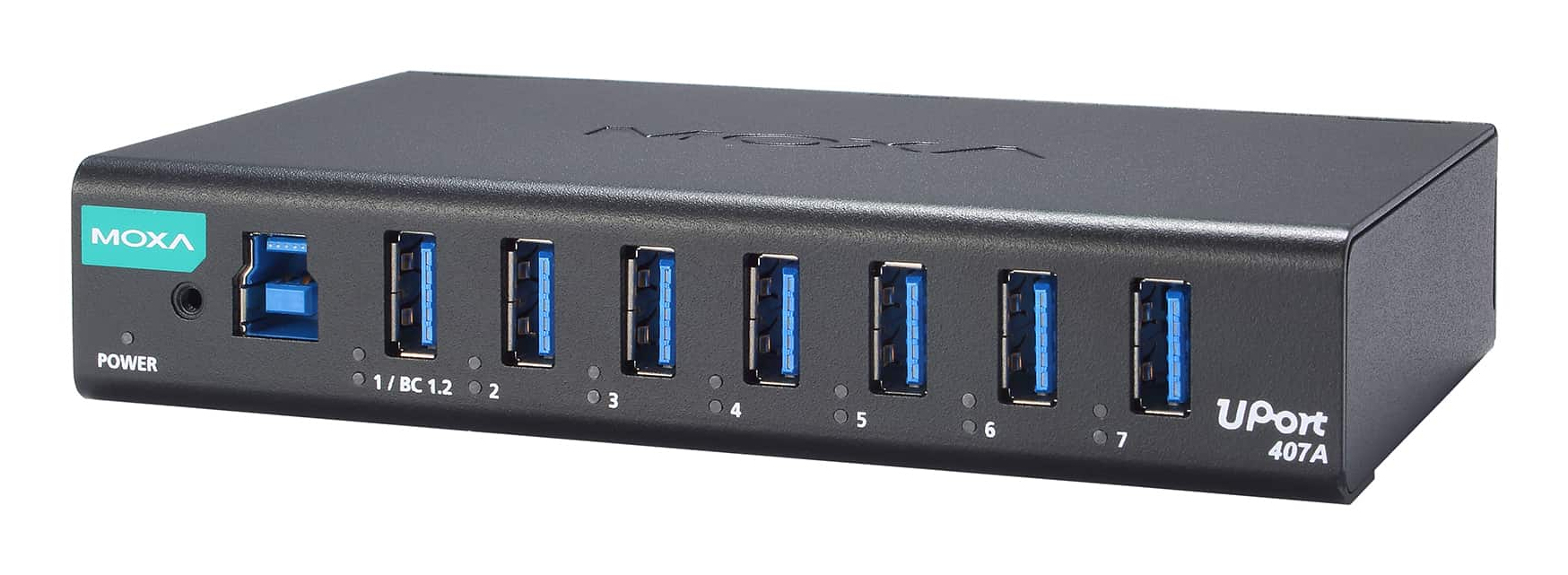Moxa UPORT 407A, USB 2.0 Type-B, USB 3.2 Gen 1 (3.1 Gen 1) Type-A, 5000 Mbit/s, Noir, Métal, 15 kV
