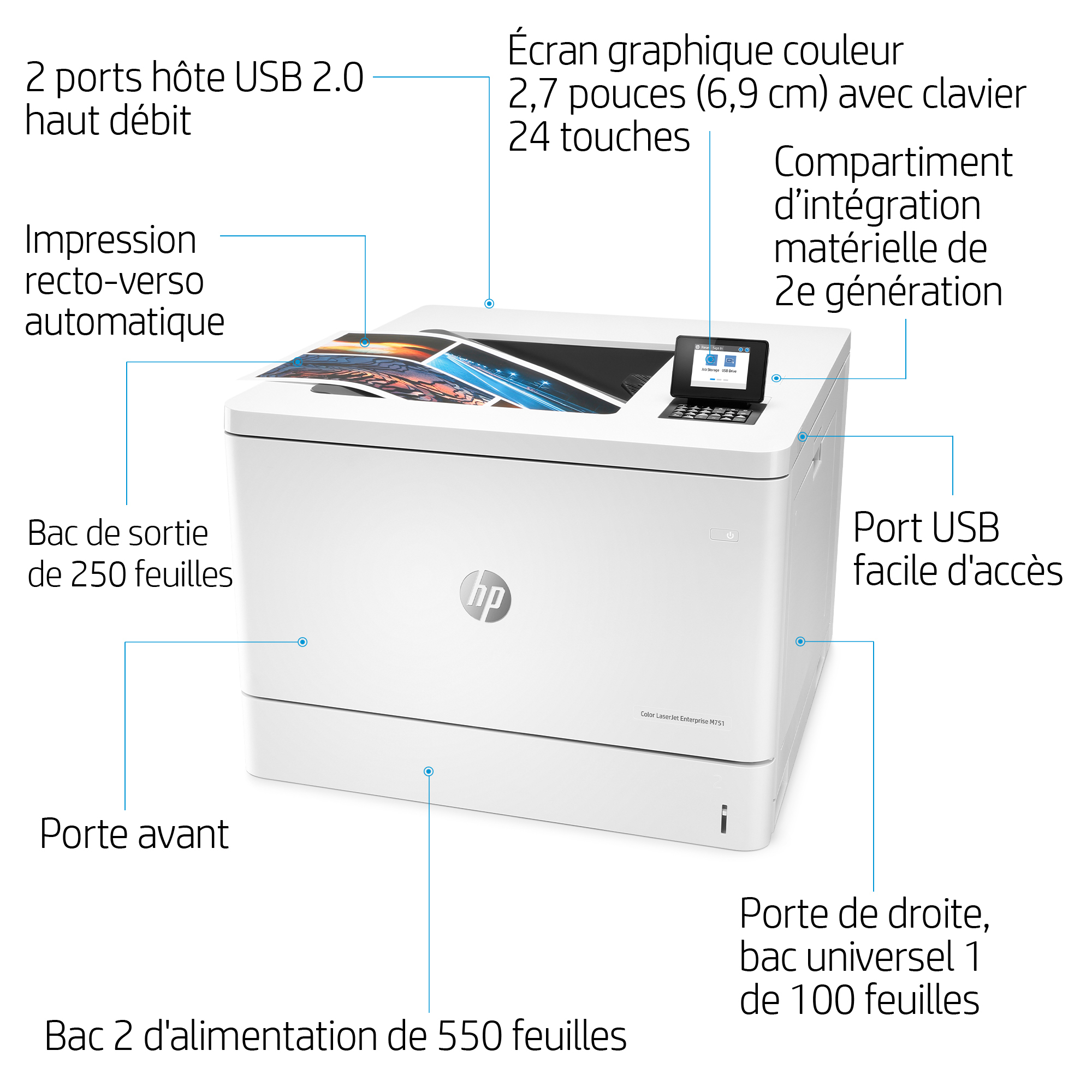 HP Color LaserJet Enterprise LaserJet Enterprise M751dn Couleur Imprimante, Ethernet uniquement; Recto verso, Laser, Couleur, 1200 x 1200 DPI, A3, 41 ppm, Impression recto-verso