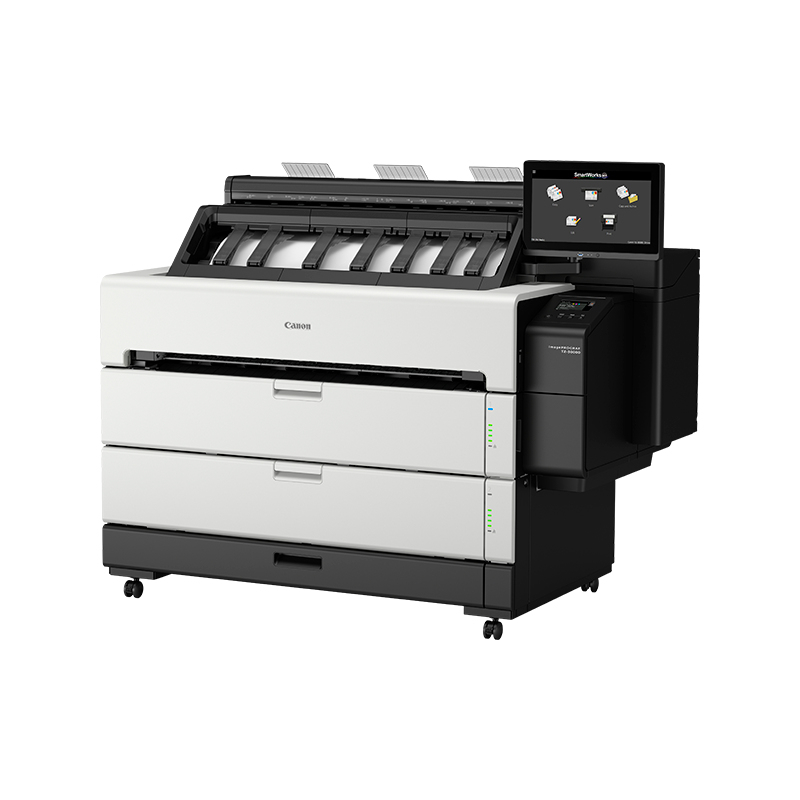 Canon imagePROGRAF TZ-30000 MFP Z36. Technologie d'impression: Jet d'encre, Résolution maximale: 2400 x 1200 DPI, Langues de la description de page: HP-GL/2, HP-RTL, PDF 1.7. Numérisation: Numérisation couleur, Résolution de numérisation optique: 1200 x 1200 DPI, Largeur maximale de balayage: 91,4 cm. Format d’impression maximale: A0 (841 x 1189 mm), Type de support du bac papier: Papier enduit, Papier ordinaire, Épaisseur du support: 0.07 - 0.8 mm. LAN Ethernet : taux de transfert des données: 10,100,1000 Mbit/s. Couleur du produit: Noir, Blanc, Capacité de stockage interne: 500 Go, Niveau de puissance sonore (veille): 35 dB