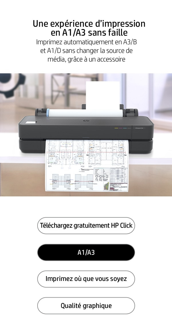 Dotée d'un design de bureau moderne qui complète son environnement et ses performances. Imprimez facilement des travaux de formats multiples grâce au basculement automatique entre le rouleau et le bac. Profitez d’une impression à grande vitesse atteignant 26 s par tracé A1. 1 Go de mémoire.