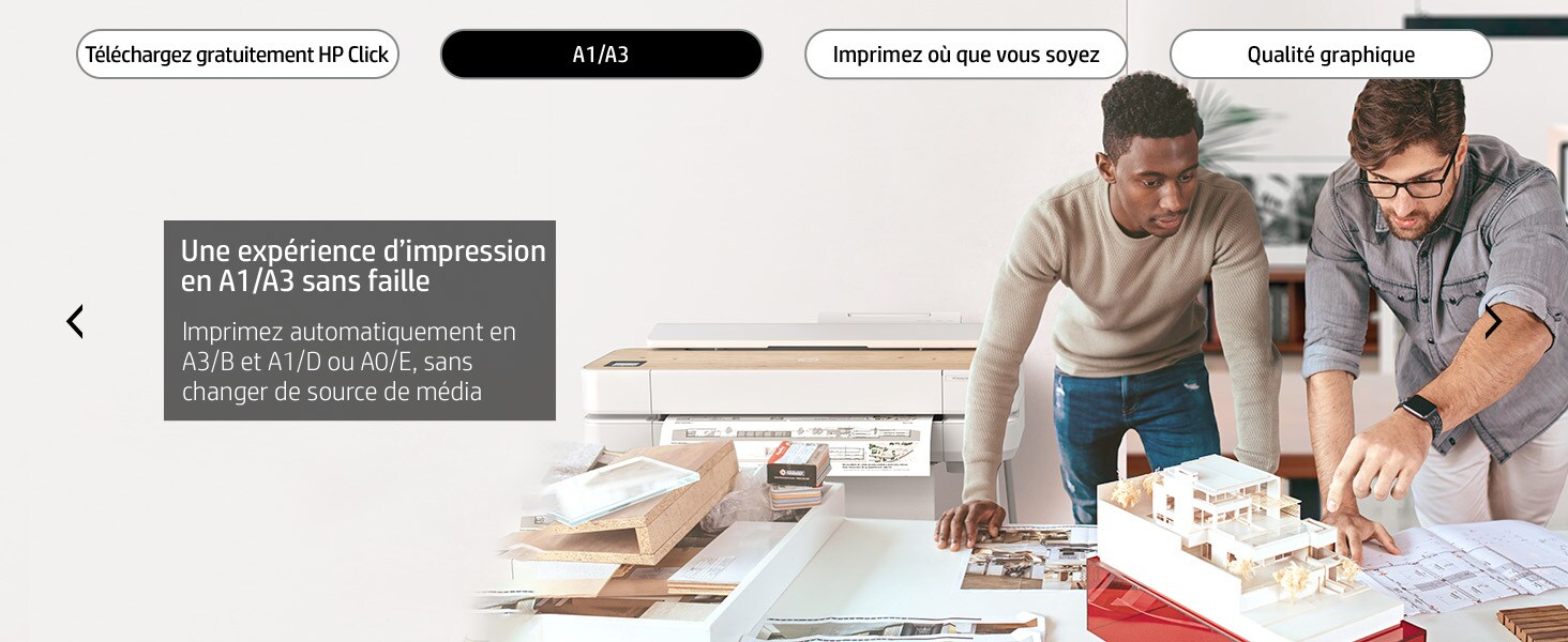 Dotée d'un design de bureau moderne qui complète son environnement et ses performances. Imprimez facilement des travaux de formats multiples grâce au basculement automatique entre le rouleau et le bac. Profitez d’une impression à grande vitesse atteignant 25 s par tracé A1. 1 Go de mémoire.