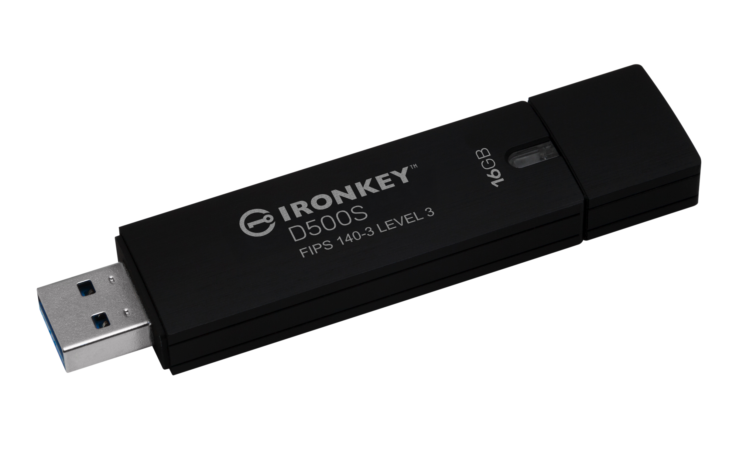 Kingston Technology IronKey 16 Go D500S FIPS 140-3 Lvl 3 AES-256, 16 Go, USB Type-A, 3.2 Gen 1 (3.1 Gen 1), 260 Mo/s, Casquette, Noir
