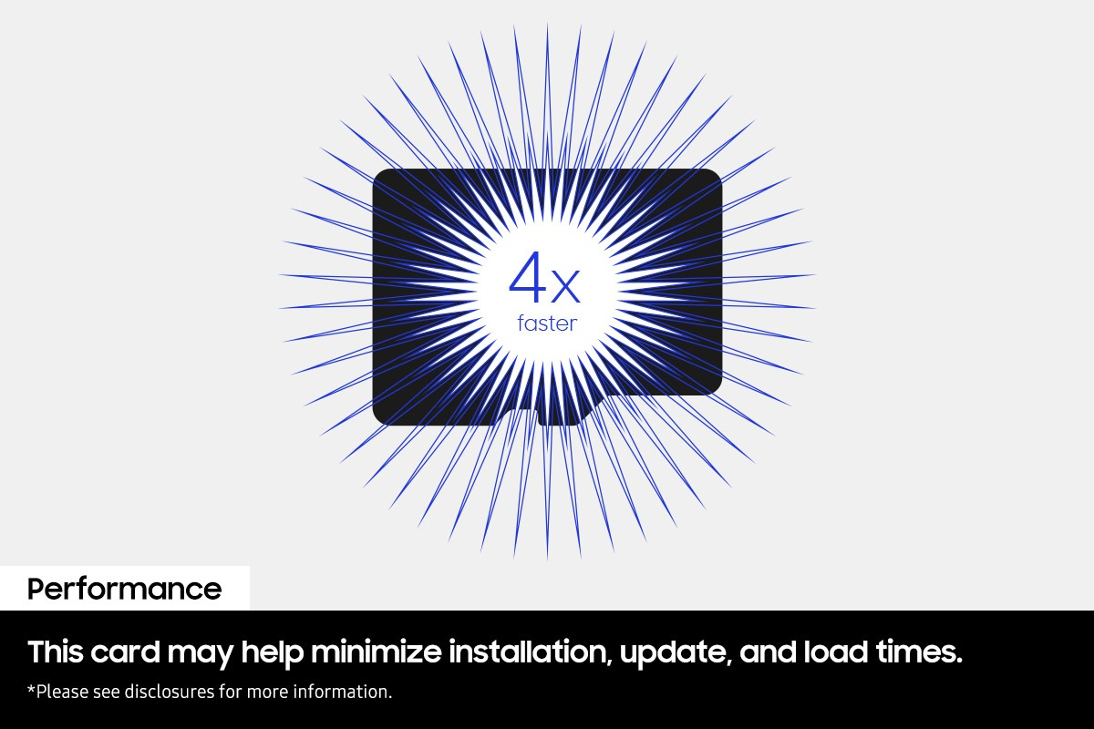 Plongez dans votre jeu en un clin d'œil. Avec des vitesses de lecture séquentielle pouvant atteindre 800 Mo/s, soit jusqu'à 4 fois plus rapide que nos cartes microSD UHS-I[1]. Cette carte peut vous aider à réduire les temps d'installation, de mise à jour et de chargement. Vos DLC et vos parties sont toujours prêts, où que vous soyez dans le jeu.