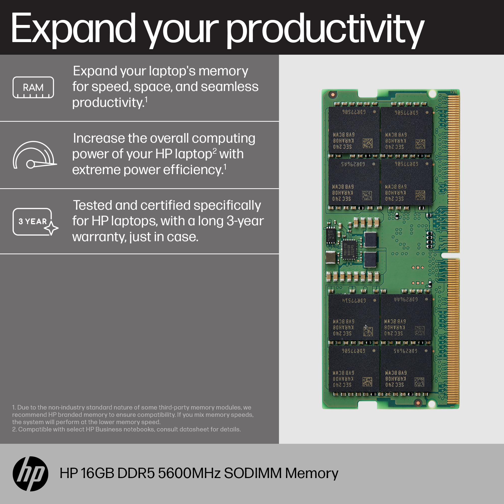 HP Mémoire SODIMM 16 Go DDR5 5600 MHz, 16 Go, 1 x 16 Go, DDR5, 5600 MHz, 262-pin SO-DIMM