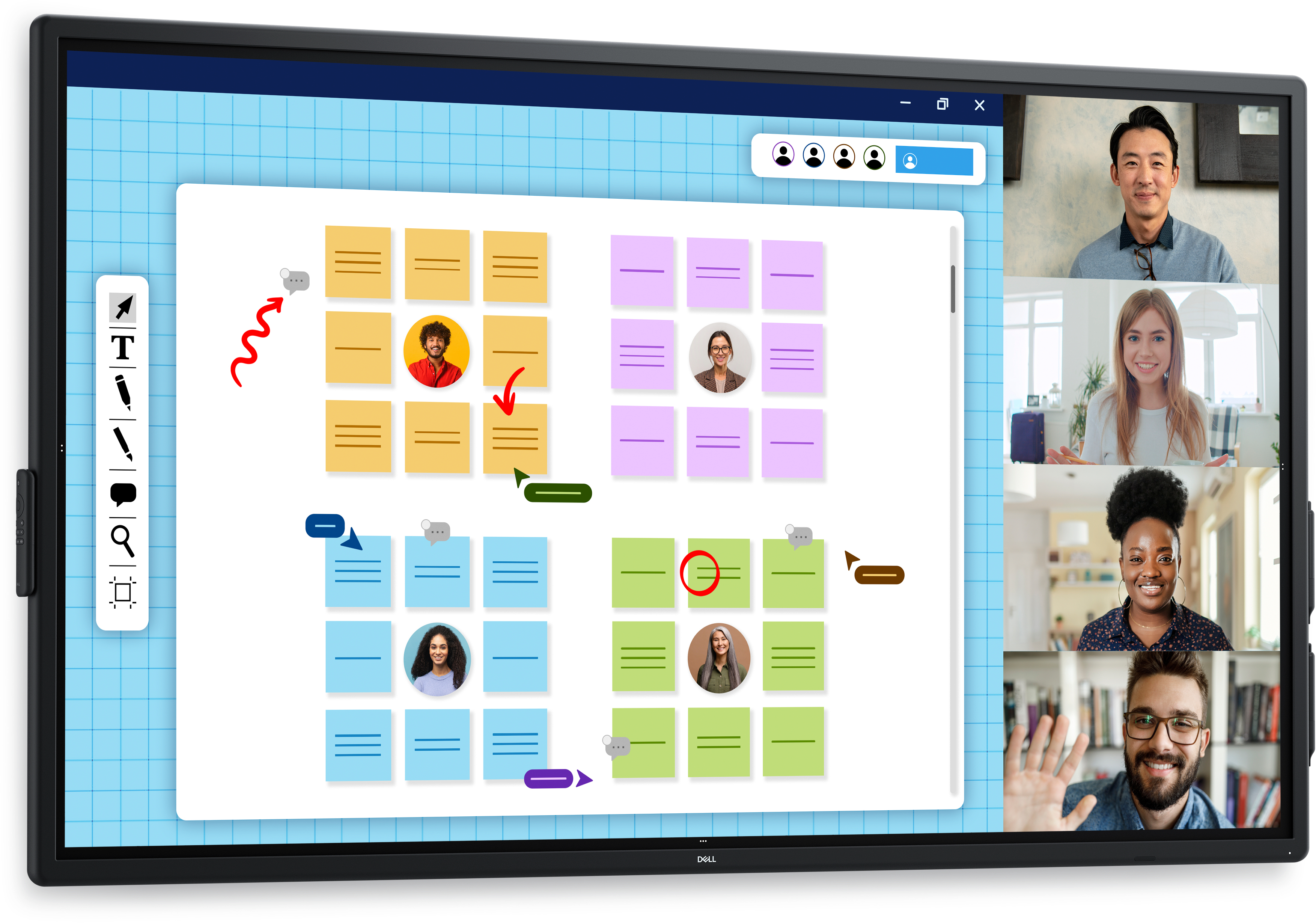 Visualisez toute votre équipe sur un écran tactile 4K de 75 pouces conçu pour améliorer la collaboration, avec une alimentation allant jusqu’à 90 W via USB-C, une utilisation sans interférence de la paume et un écran tactile InGlass à 20 points.