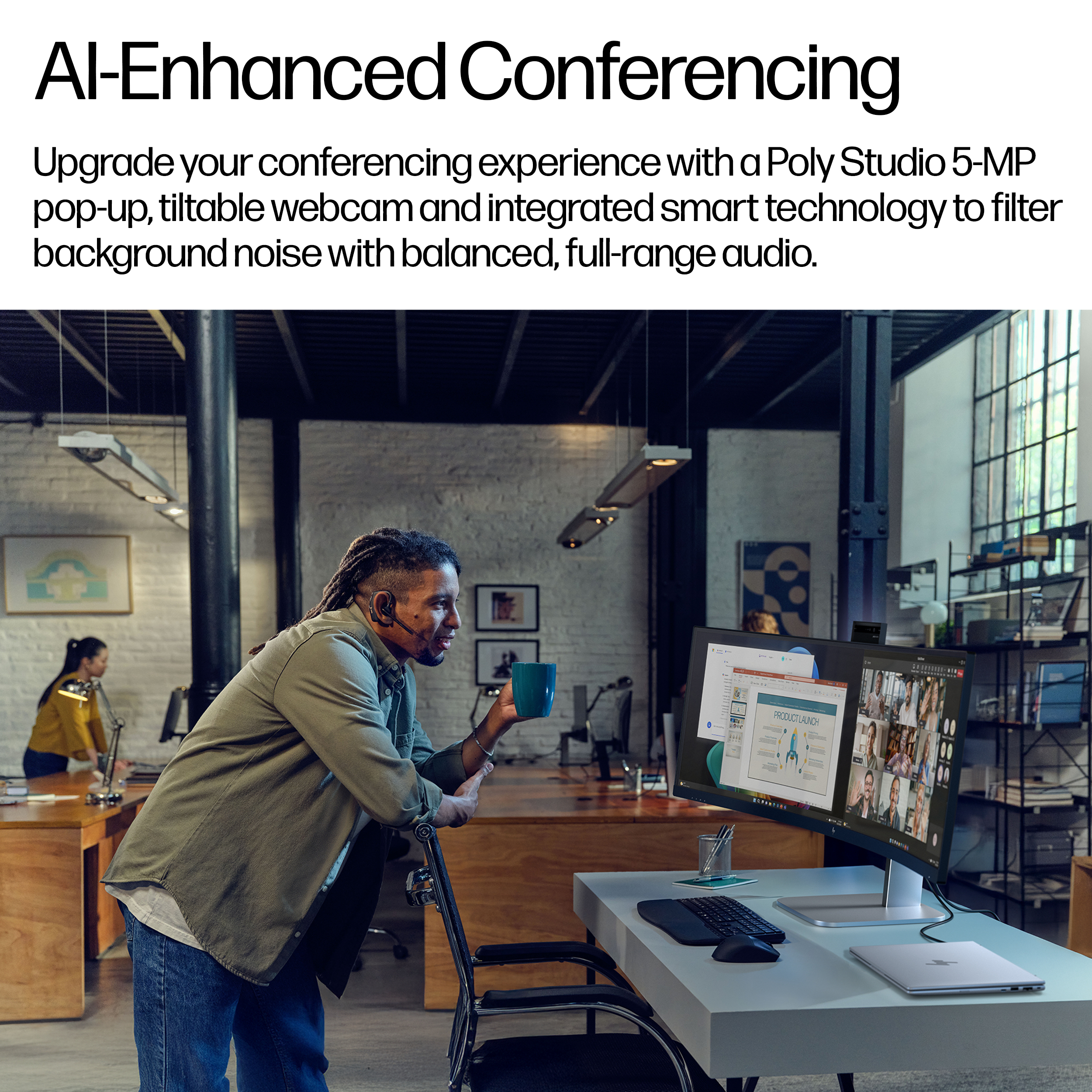 Affichez plus, faites plus, plus rapidement avec un seul espace immersif prenant en charge jusqu’à deux appareils simultanément pour un multitâche fluide d’un bord à l’autre avec l’écran pour visioconférence DQHD 49 pouces HP Series 5 Pro. Intégrez la visioconférence optimisée par l’IA et une connectivité étendue avec ce centre de commande ultra-large.