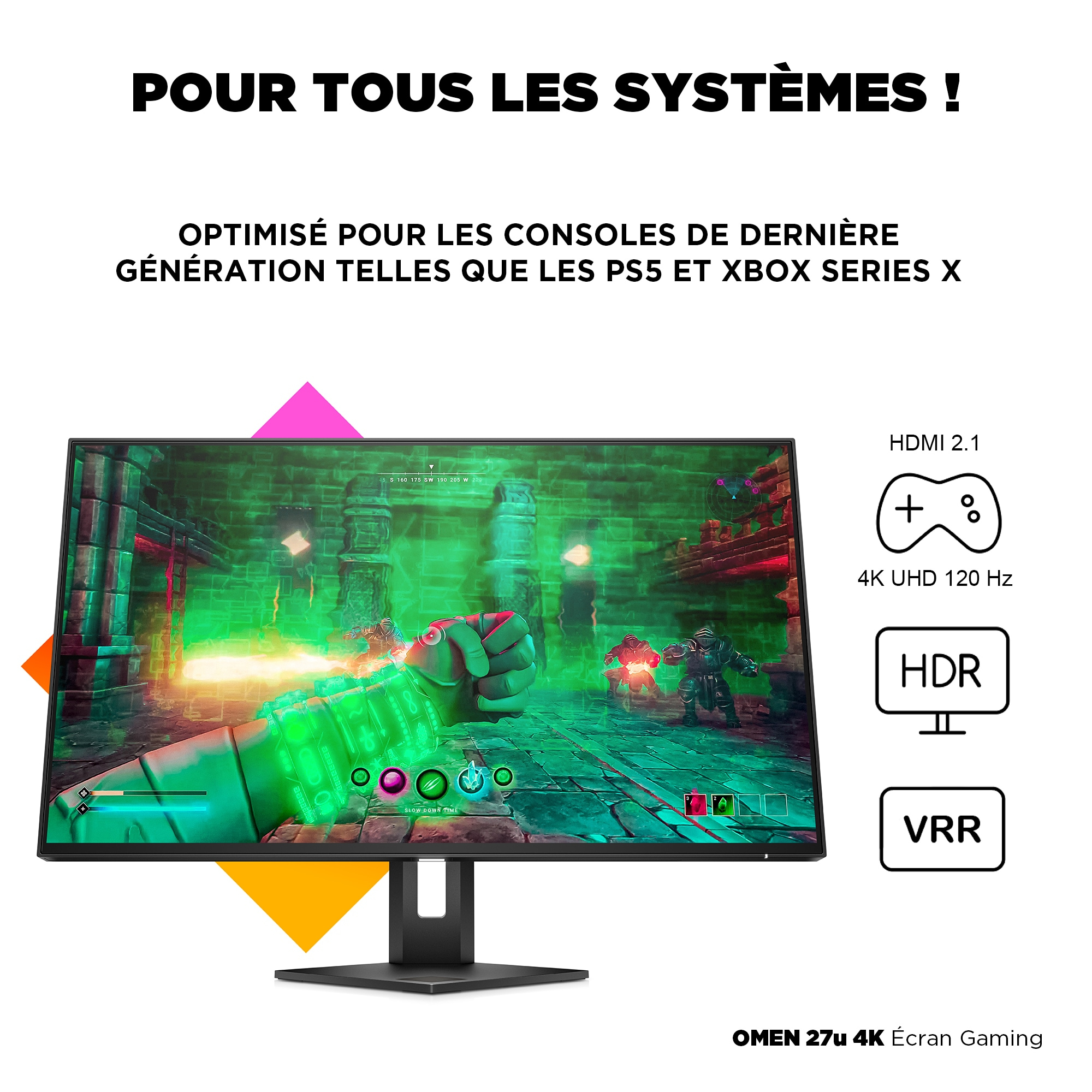 Plutôt console ou PC ? Plutôt les deux. La console passe au niveau supérieur. Plus de puissance. Plus de réalisme. Plus de plaisir. Vos graphismes n’ont jamais été aussi beaux avec les couleurs splendides et la vitesse fluide de l’écran gamer 4K ultraperformant[1] compatible avec les nouvelles consoles via le port HDMI 2.1. Vous voulez jouer avec sur PC ? Aucun problème. Réglez chaque paramètre de votre jeu avec OMEN Gaming Hub et passez au niveau supérieur sur console et sur PC.