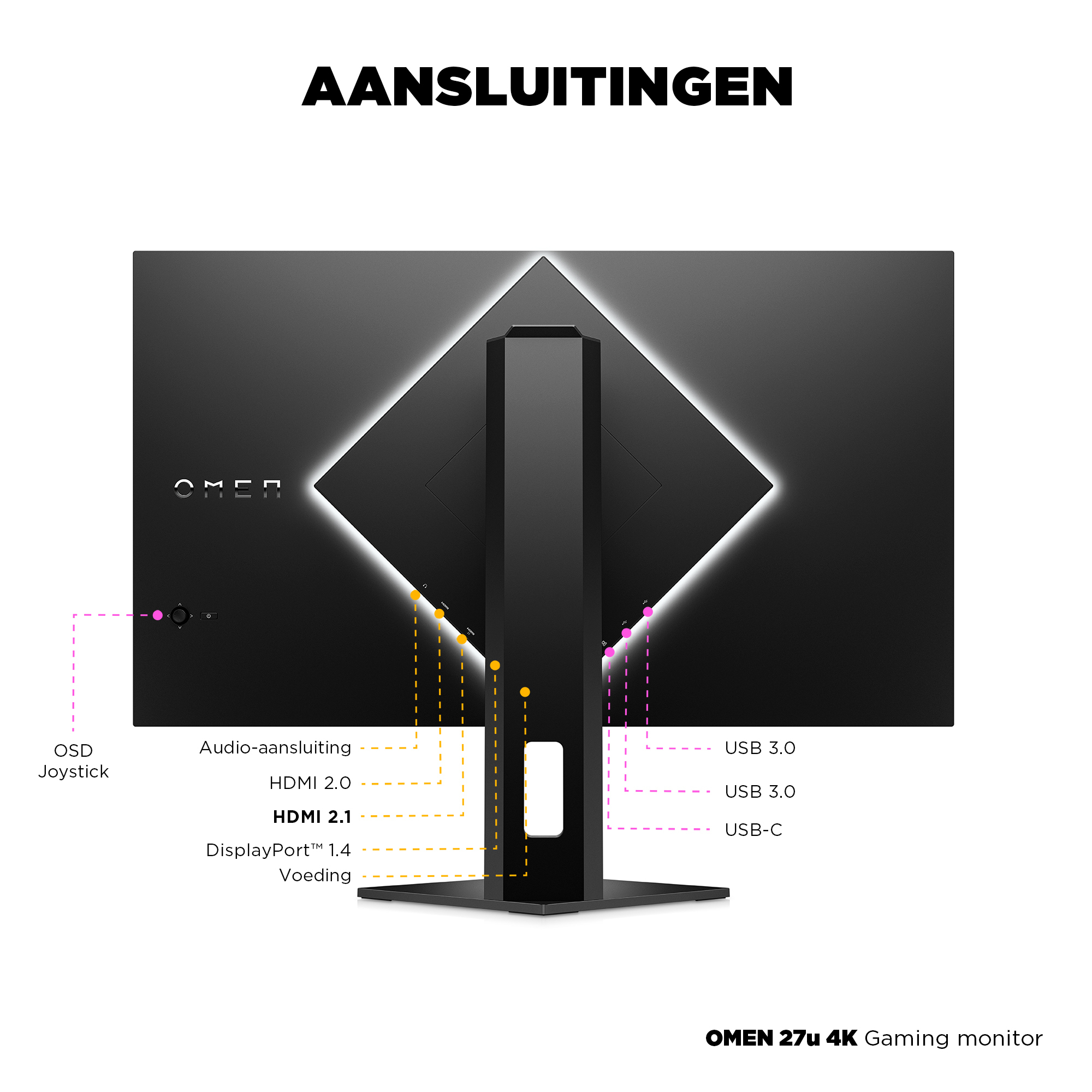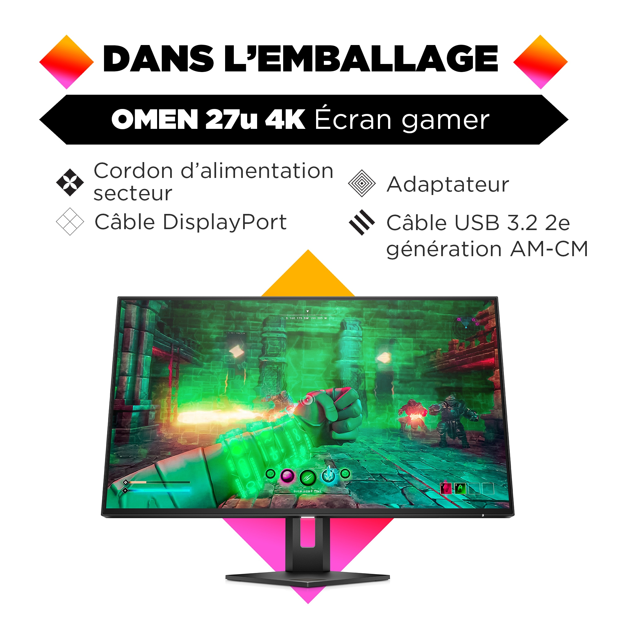 HP OMEN Écran gamer 4K 27u, 68,6 cm (27"), 3840 x 2160 pixels, 4K Ultra HD, LED, 1 ms, Noir