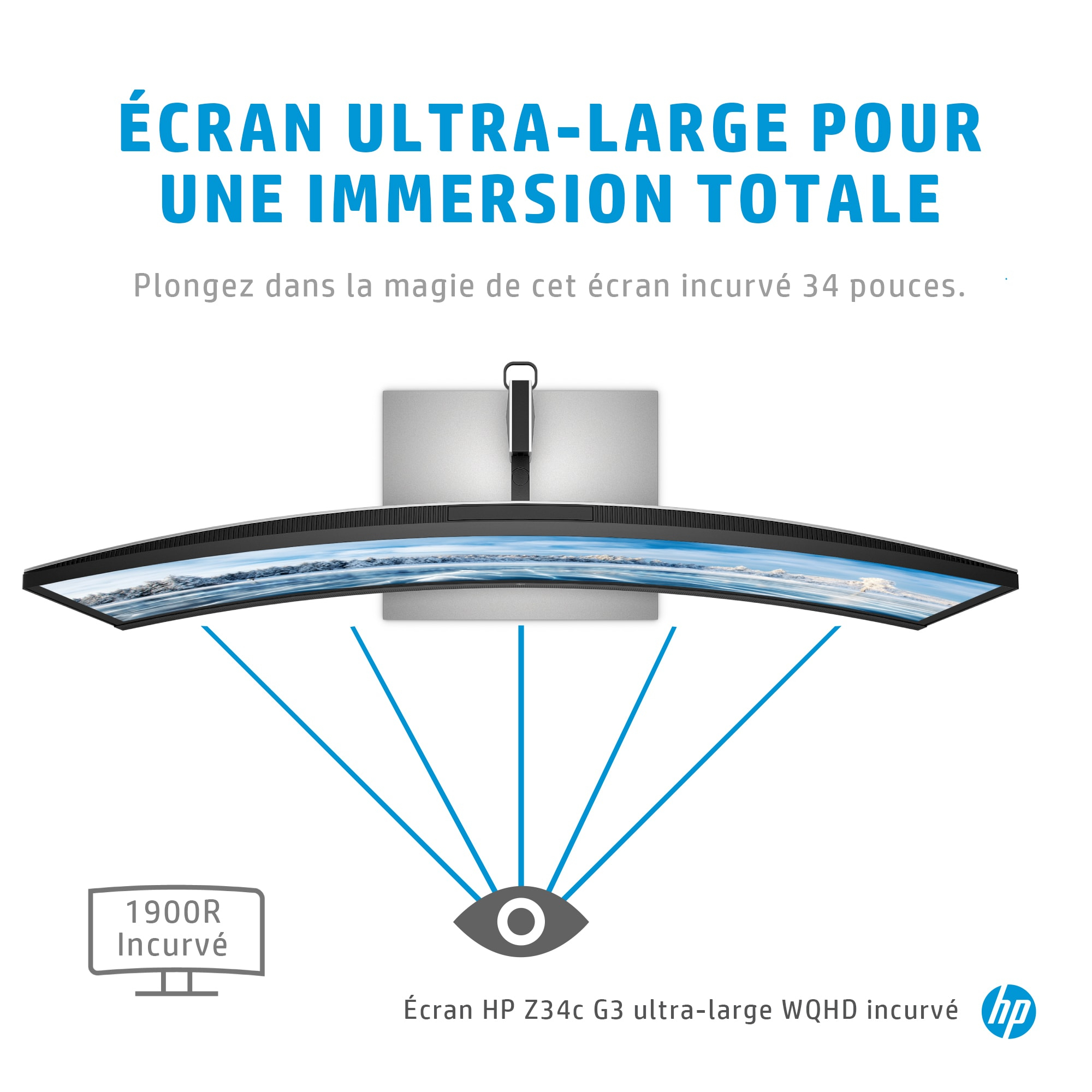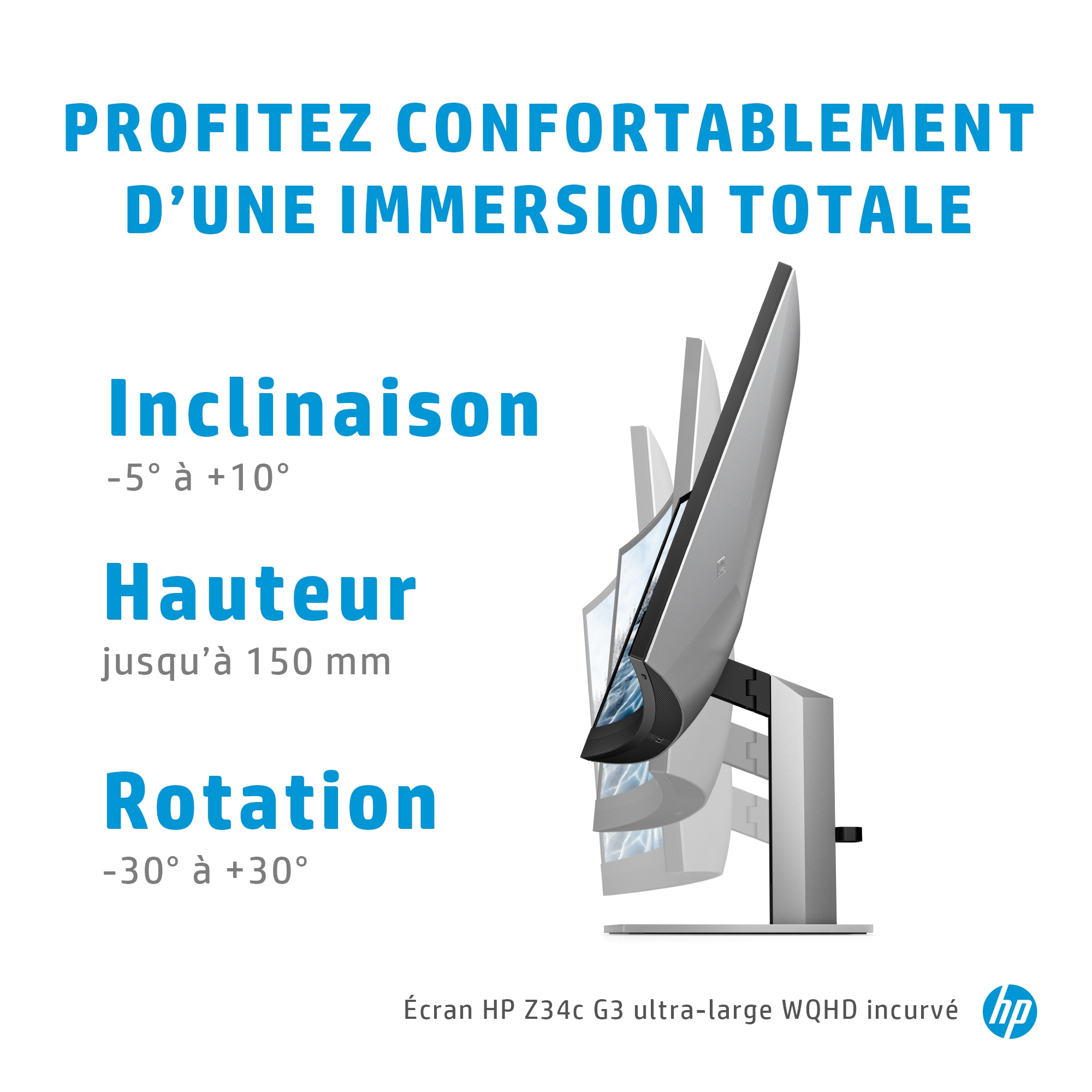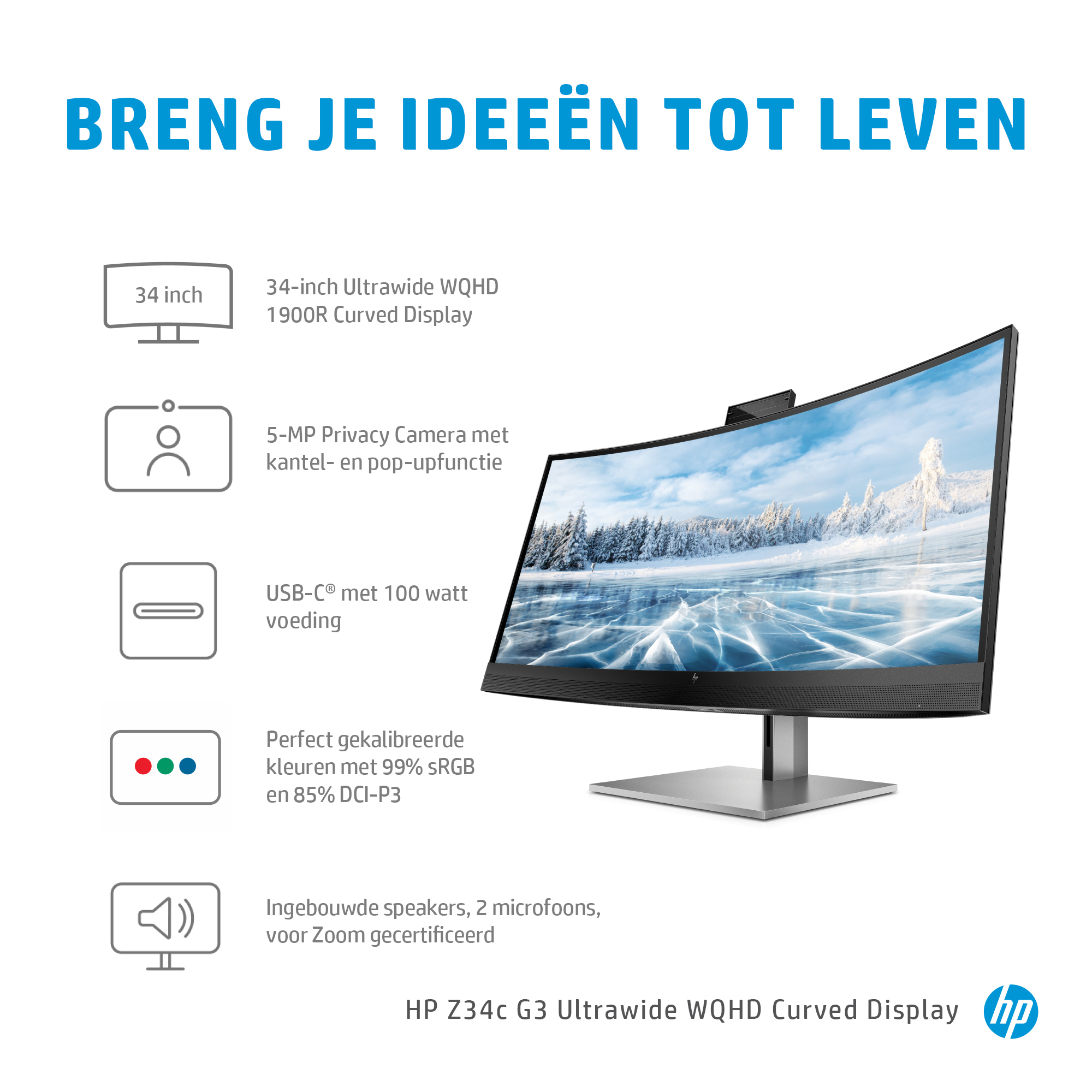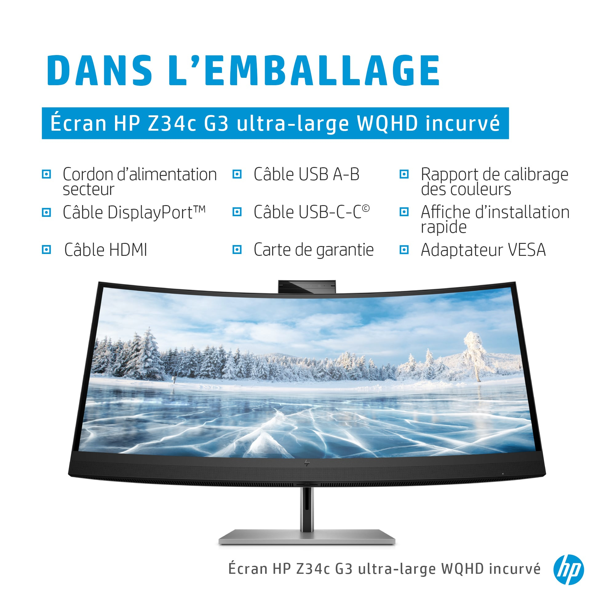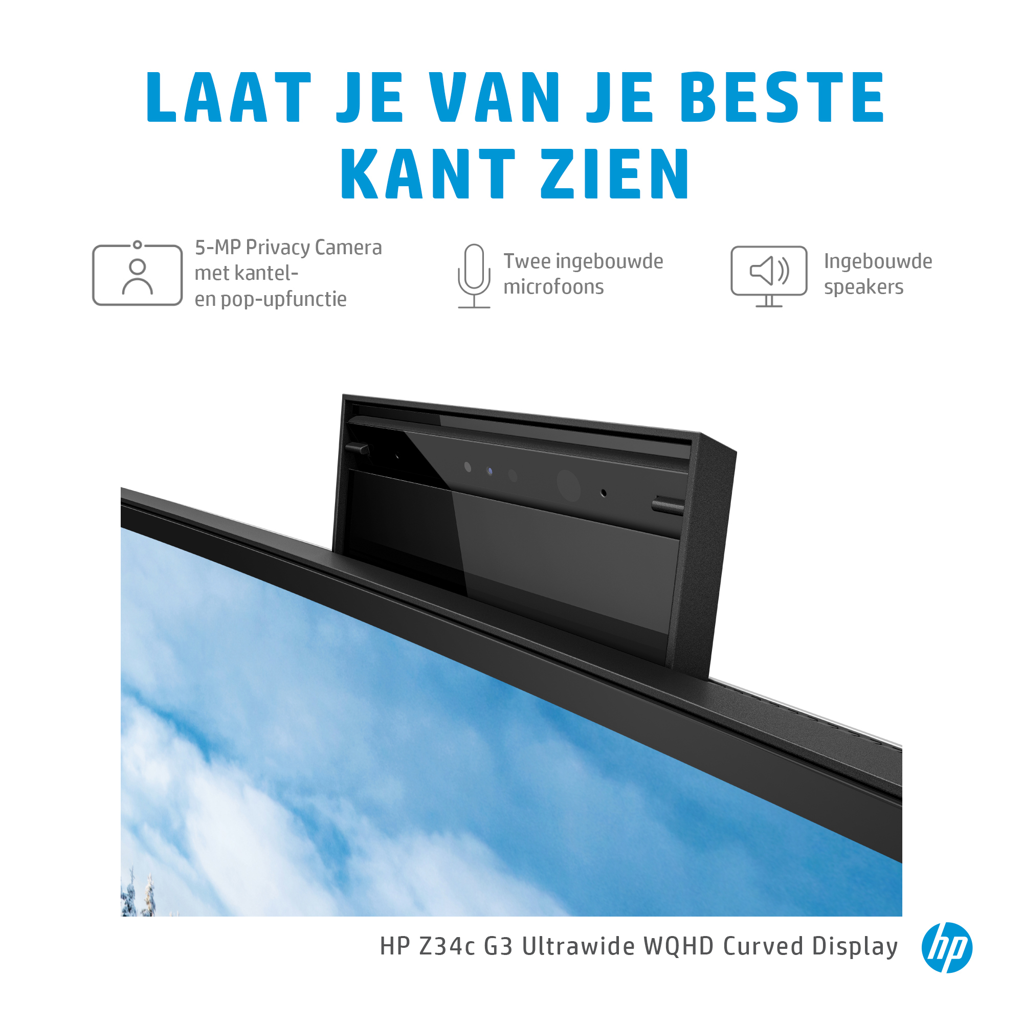 Gagnez de l'espace pour développer vos idées grâce à l'écran incurvé QHD Z34c ultra-large mis au point pour donner vie à votre travail avec une clarté d'affichage et une précision des couleurs remarquables. Et montrez vos projets en toute confiance sur un moniteur certifié Zoom doté d'une webcam 5 MP intégrée avec double micro et de haut-parleurs frontaux.