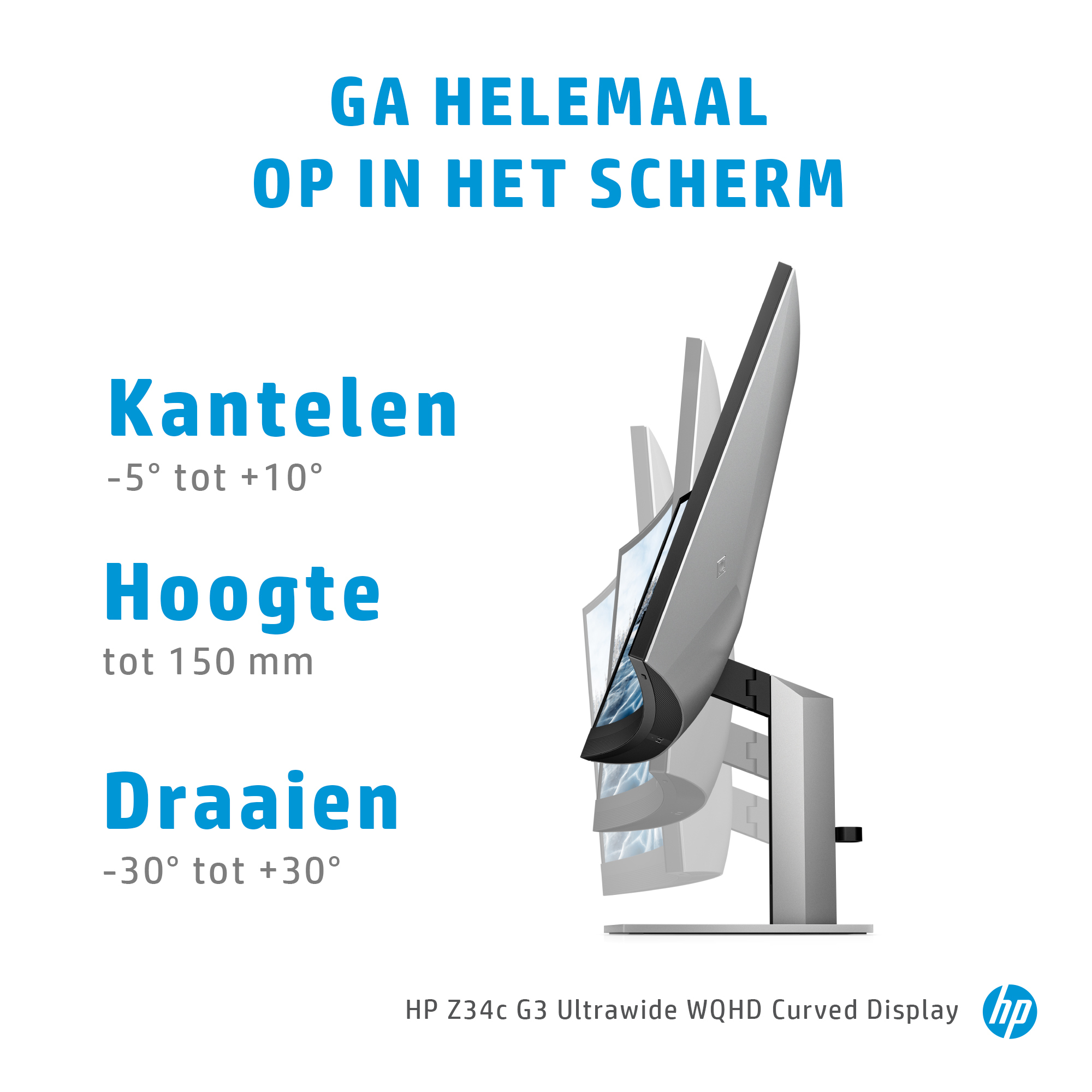 HP Z34c G3, 86,4 cm (34"), 3440 x 1440 pixels, Wide Quad HD, LED, 6 ms, Gris