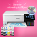 Cette imprimante économique vous permet d’imprimer jusqu’à 2 300 photos de haute qualité avec un seul jeu de bouteilles d’encre1 Les bouteilles et les réservoirs sont conçus pour être faciles à utiliser, ce qui vous épargne les difficultés associées aux autres systèmes de réservoirs d’encre lorsqu’il est temps de les recharger.
