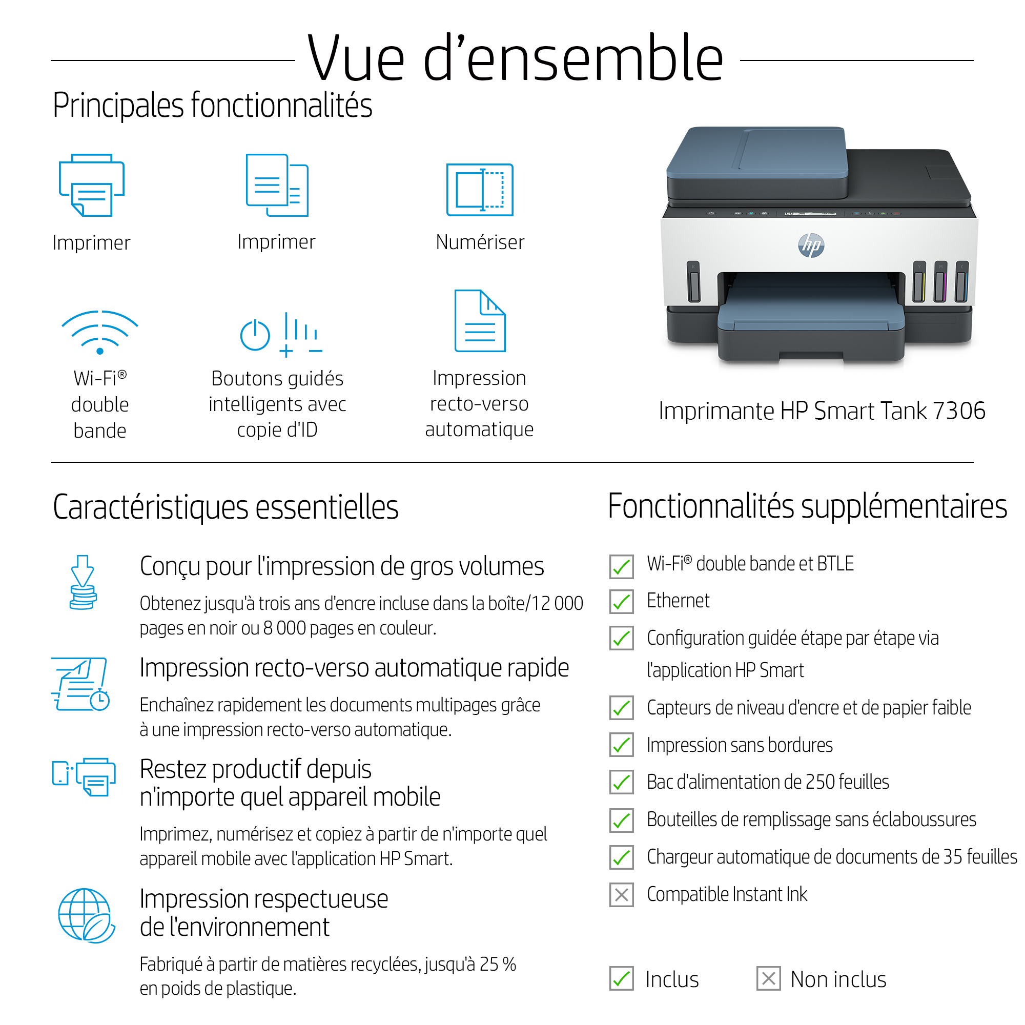 Imprimante Tout-en-un HP Smart Tank 7306