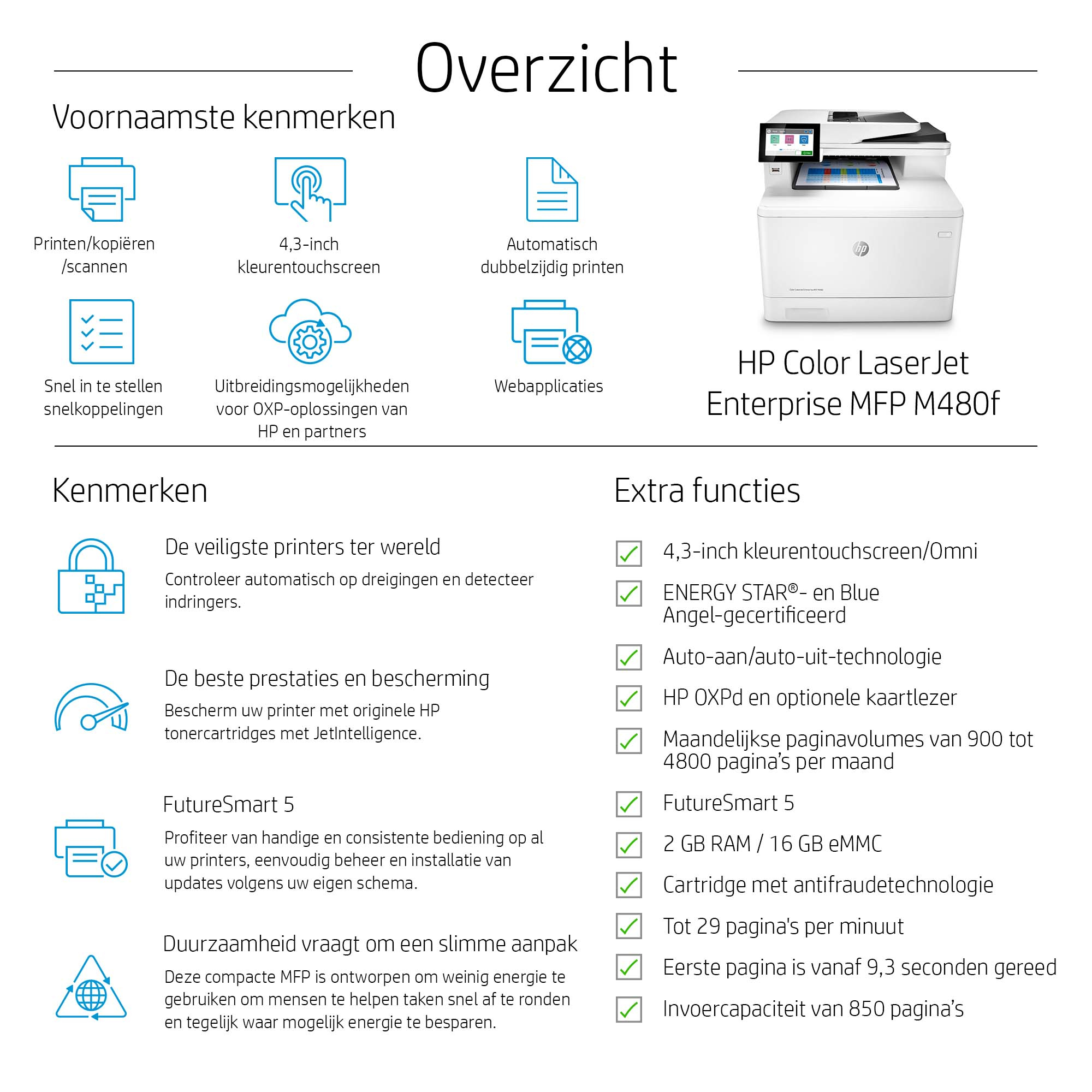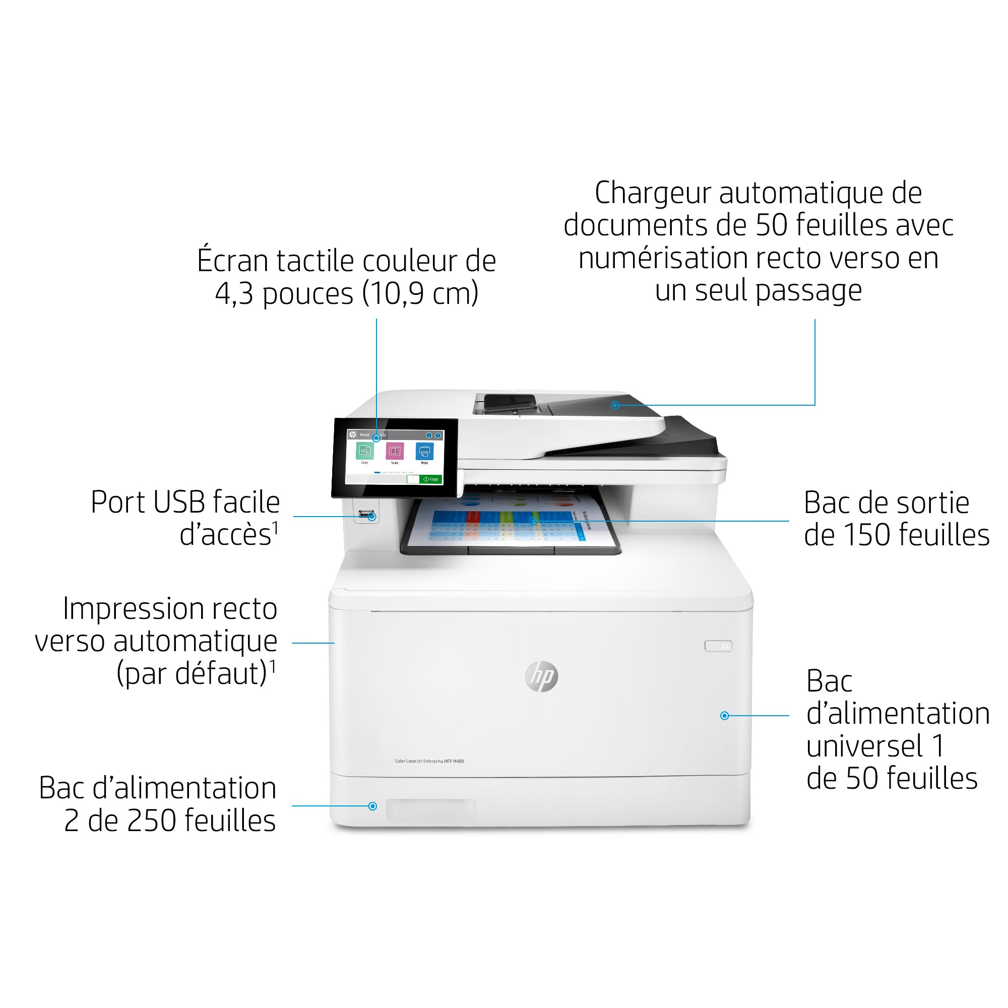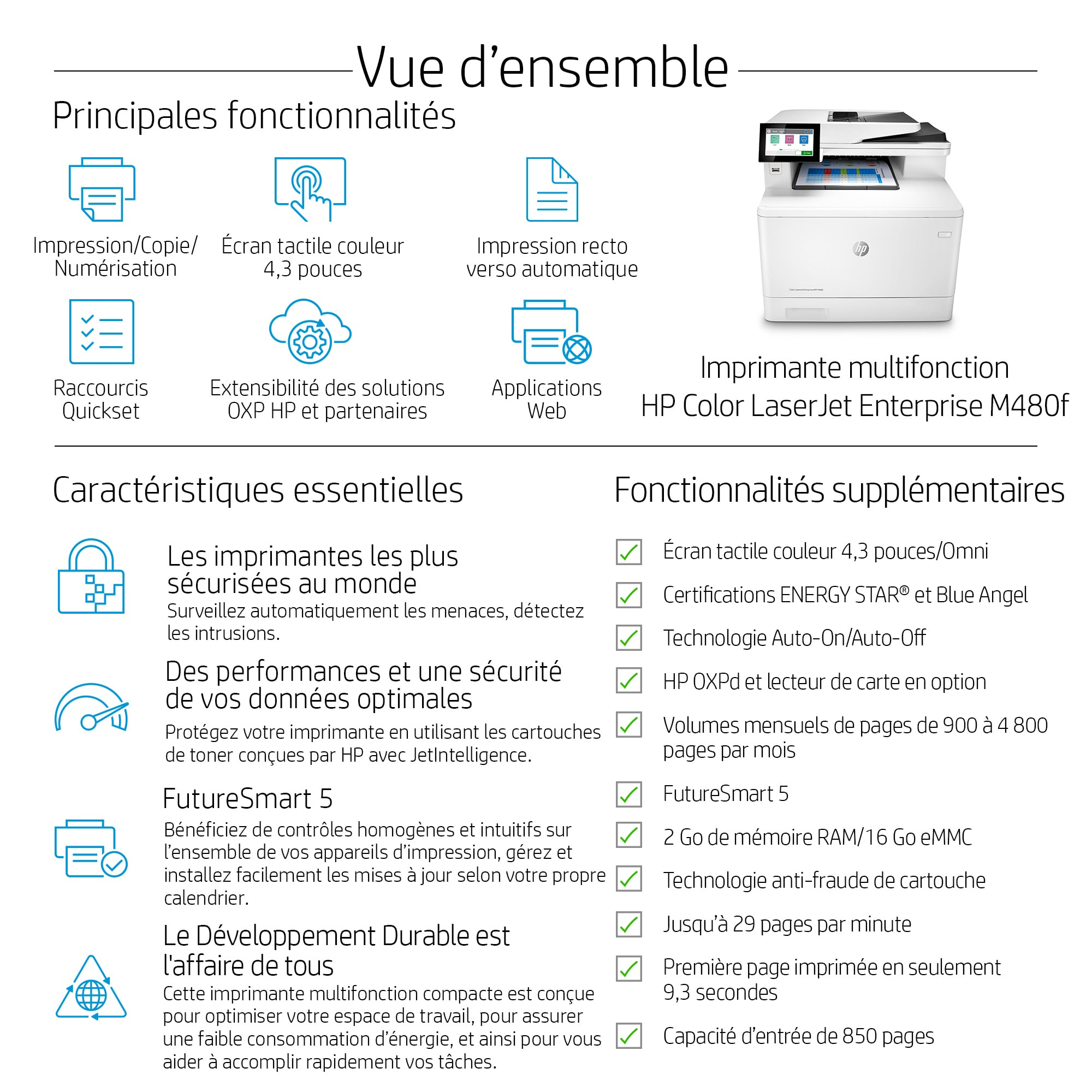 HP Color LaserJet Enterprise Imprimante couleur M480f Multifonction - Noir,Cyan,Magenta,Jaune caractéristiques
