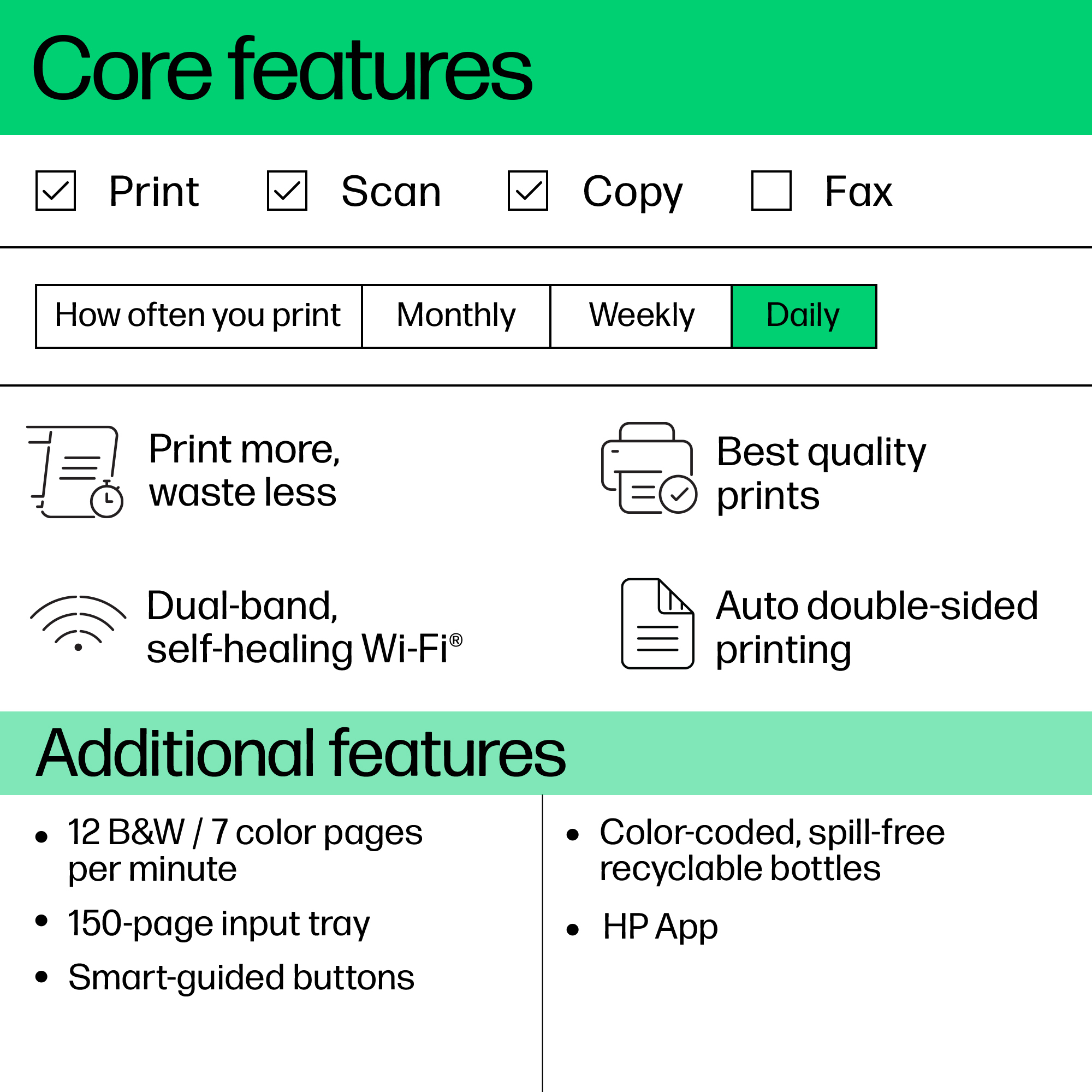 L’impression facile et économique. Simplifiez l’impression à domicile grâce à la configuration mobile [1], à l’impression recto-verso, aux boutons à guidage intelligent, aux capteurs de niveau d’encre bas et au nombre réduit d’interruptions. En outre, optimisez la valeur grâce à l’encre haut volume, avec jusqu’à trois ans d’encre HP authentique inclus dans la boîte.[2].