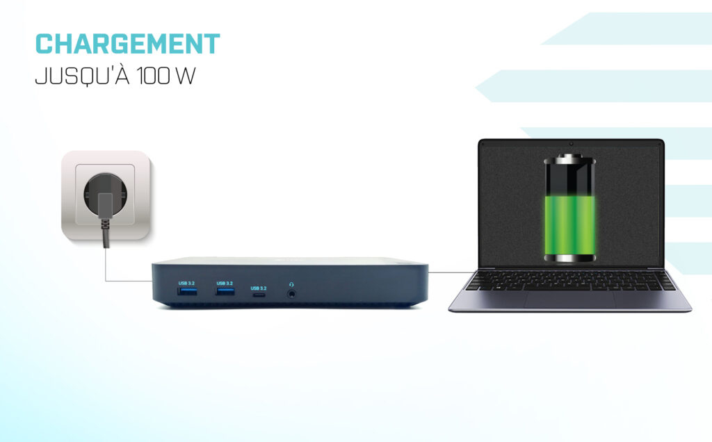Si la station d’accueil est connectée via USB 3.0, la charge des ordinateurs portables et des tablettes n’est pas prise en charge.