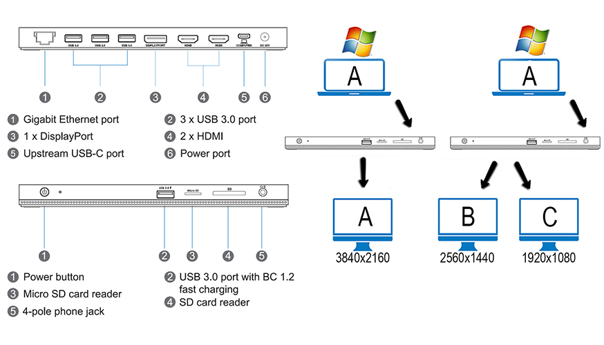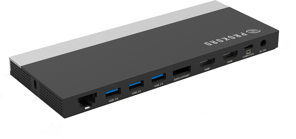 Prokord UMD05, Avec fil, USB 3.2 Gen 1 (3.1 Gen 1) Type-C, 85 W, 3,5 mm, Noir, Gris, MicroSDHC, MicroSDXC, SD, SDHC, SDXC