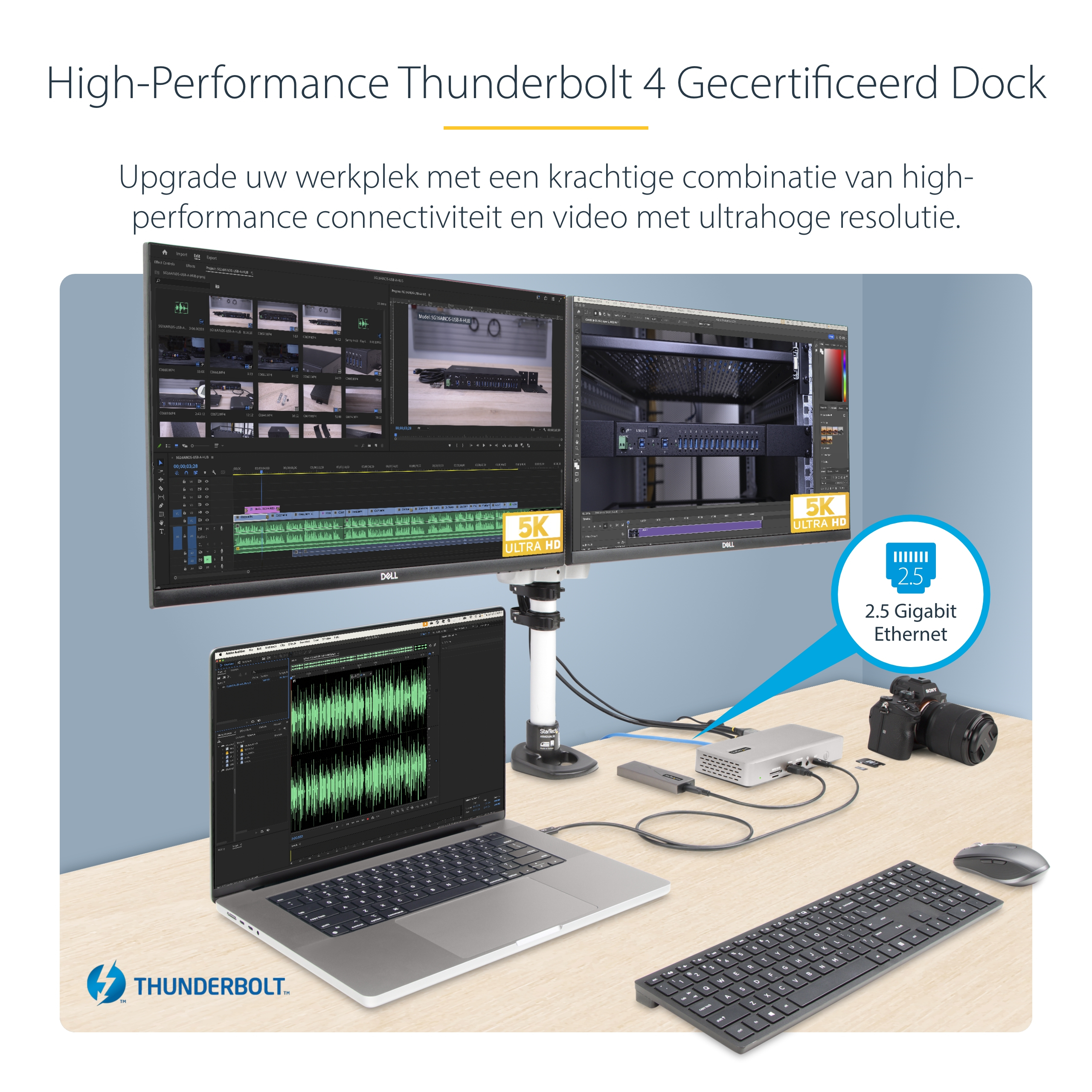 StarTech Station d'Accueil Thunderbolt 4 - Double 4K Macbook Pro et M4 Air, Quadruple Écran 4K Windows, Station d'Accueil pour PC 16 Ports 40Gbps avec Charge 100W, 2x HDMI, 2x DisplayPort