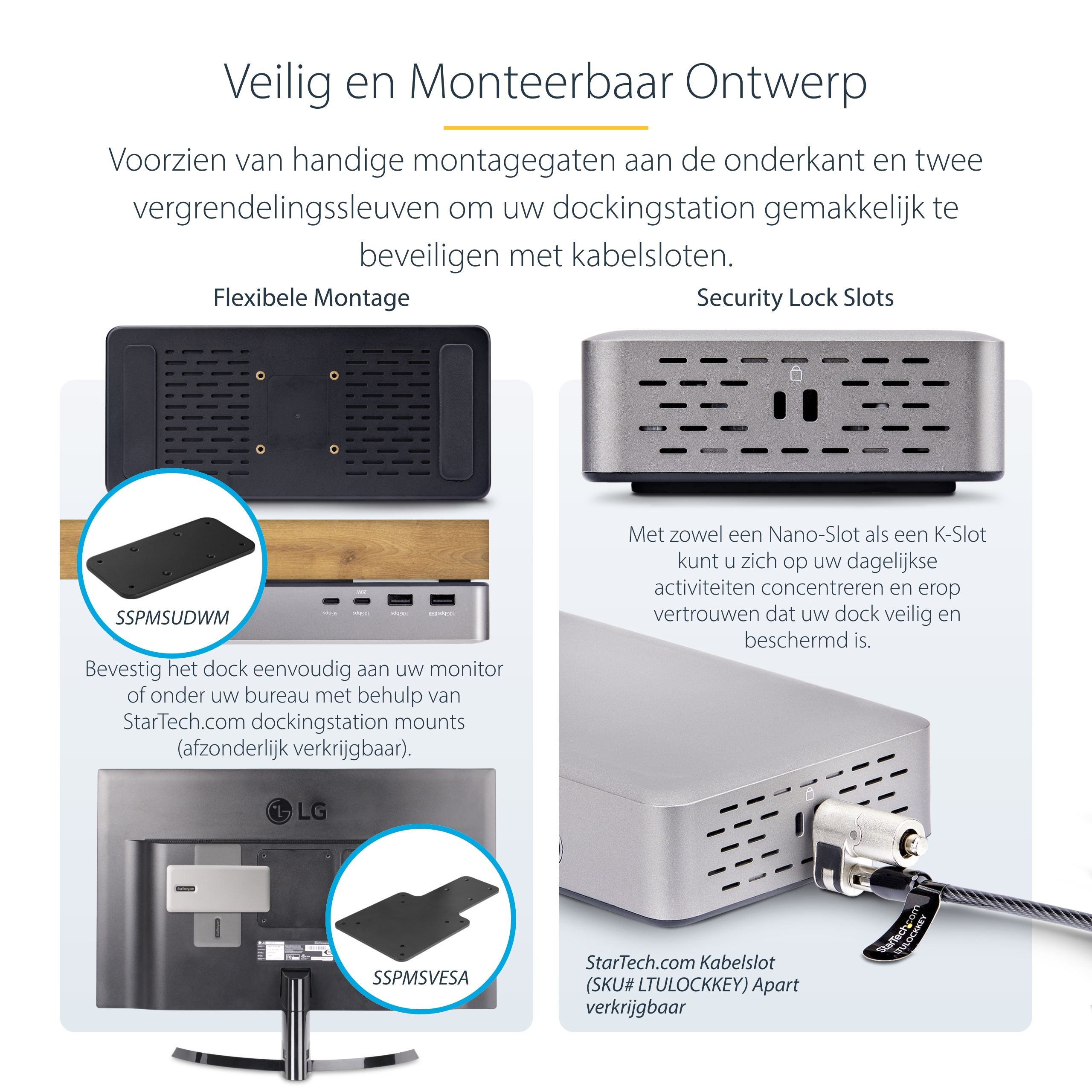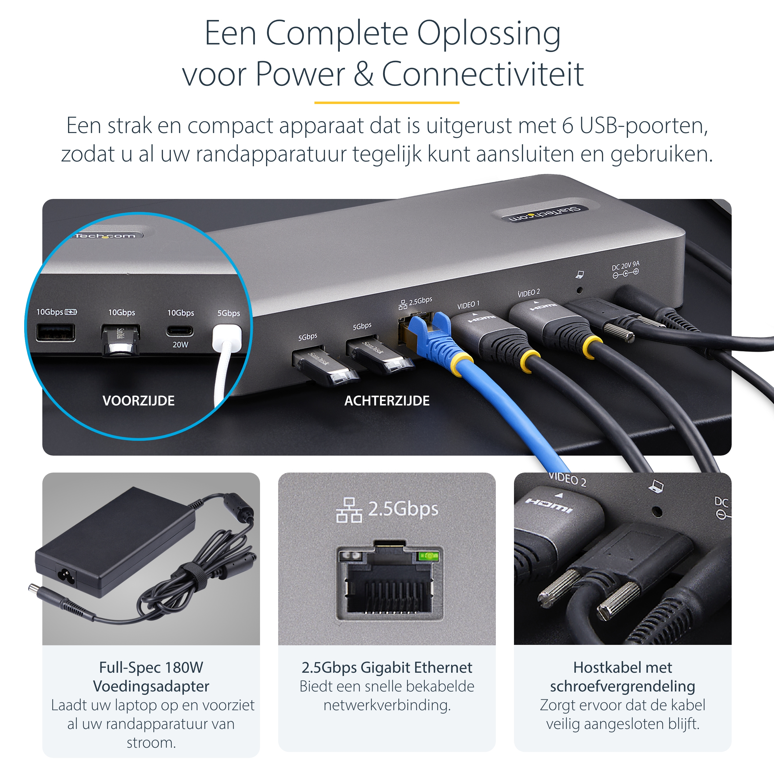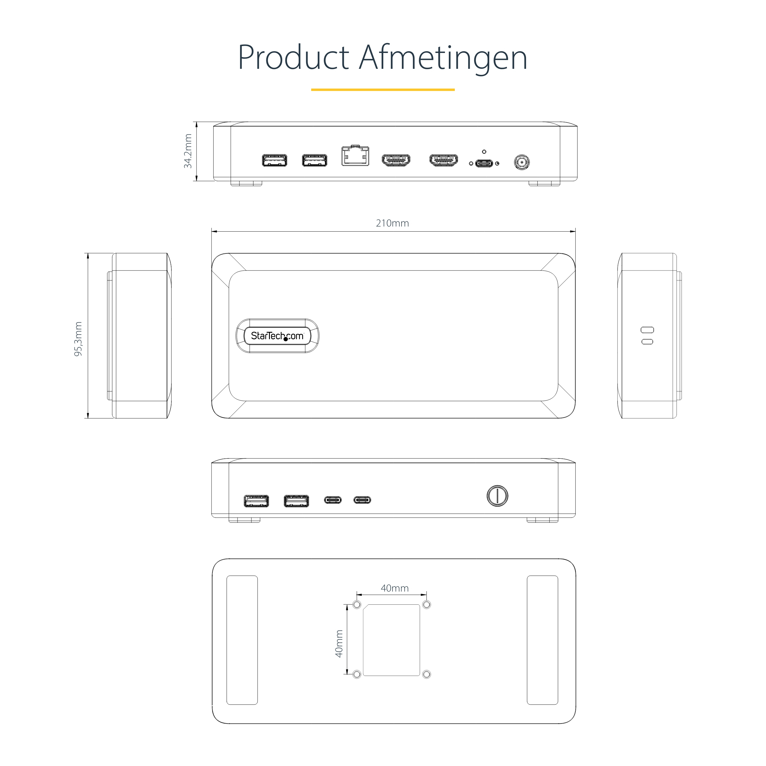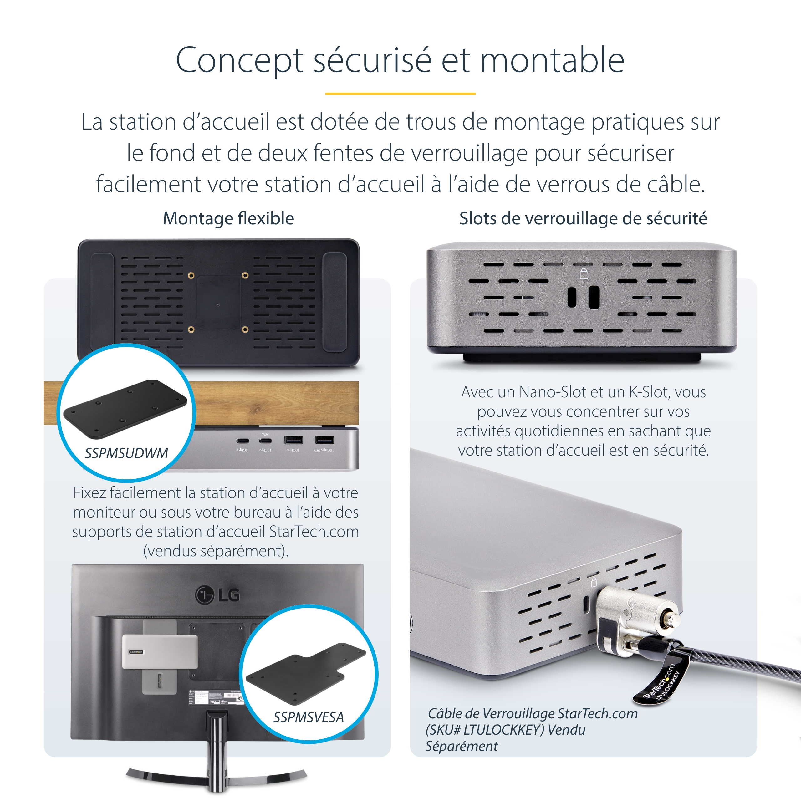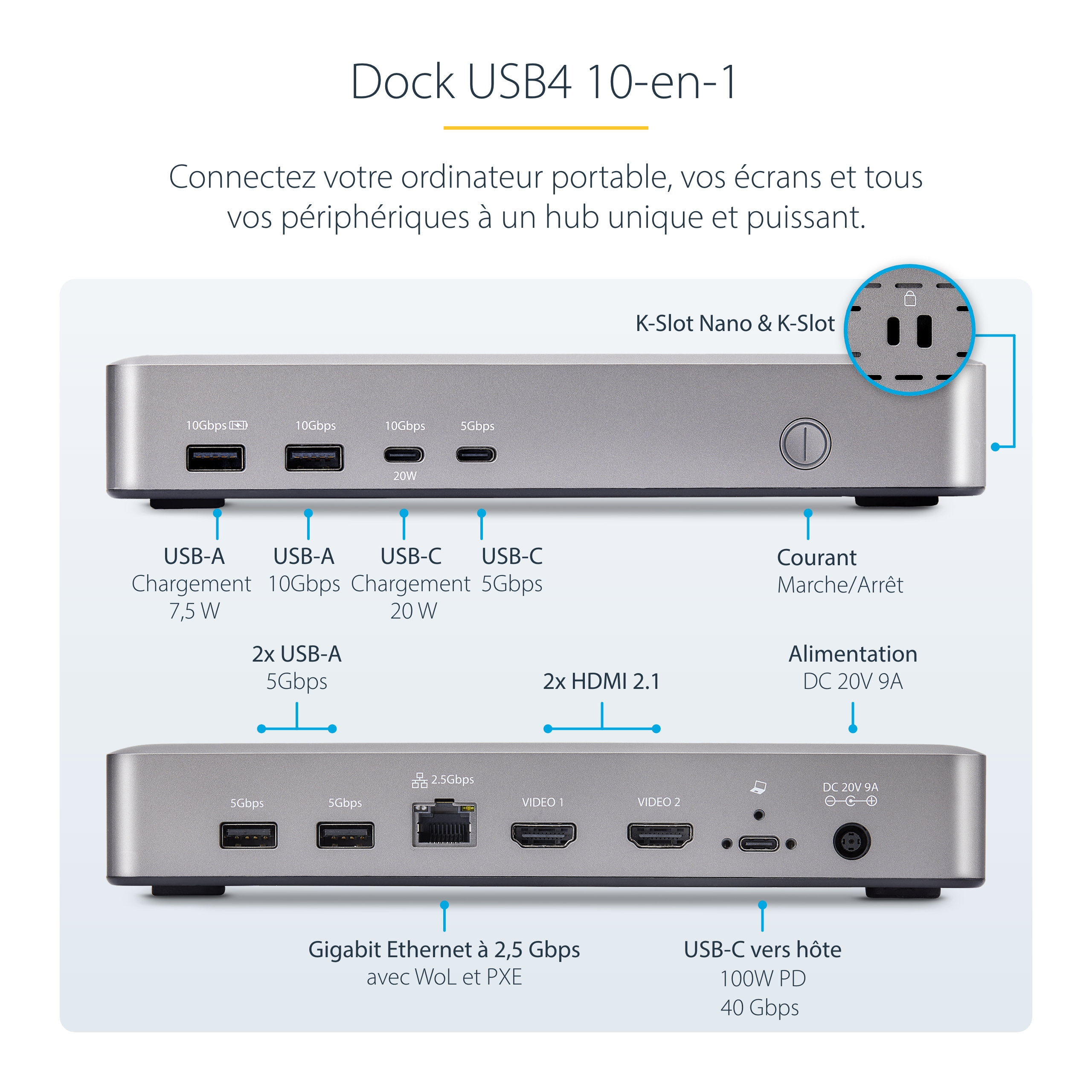 StarTech Station d'Accueil USB4, USB-C 40Gbps, Double HDMI, Jusqu'à 2x 4K 60Hz, Dock Multi-Moniteur, 6x USB, 2.5GbE
