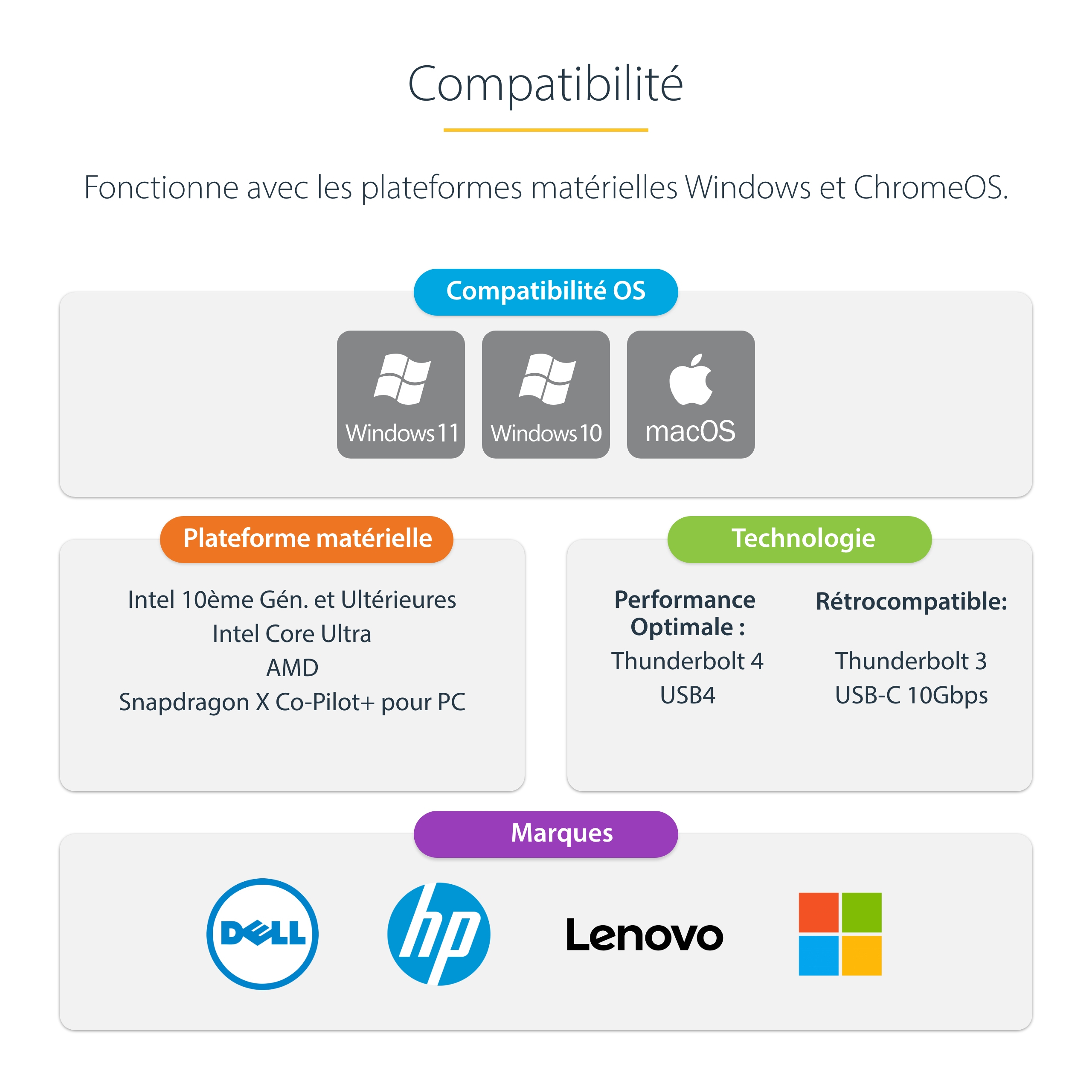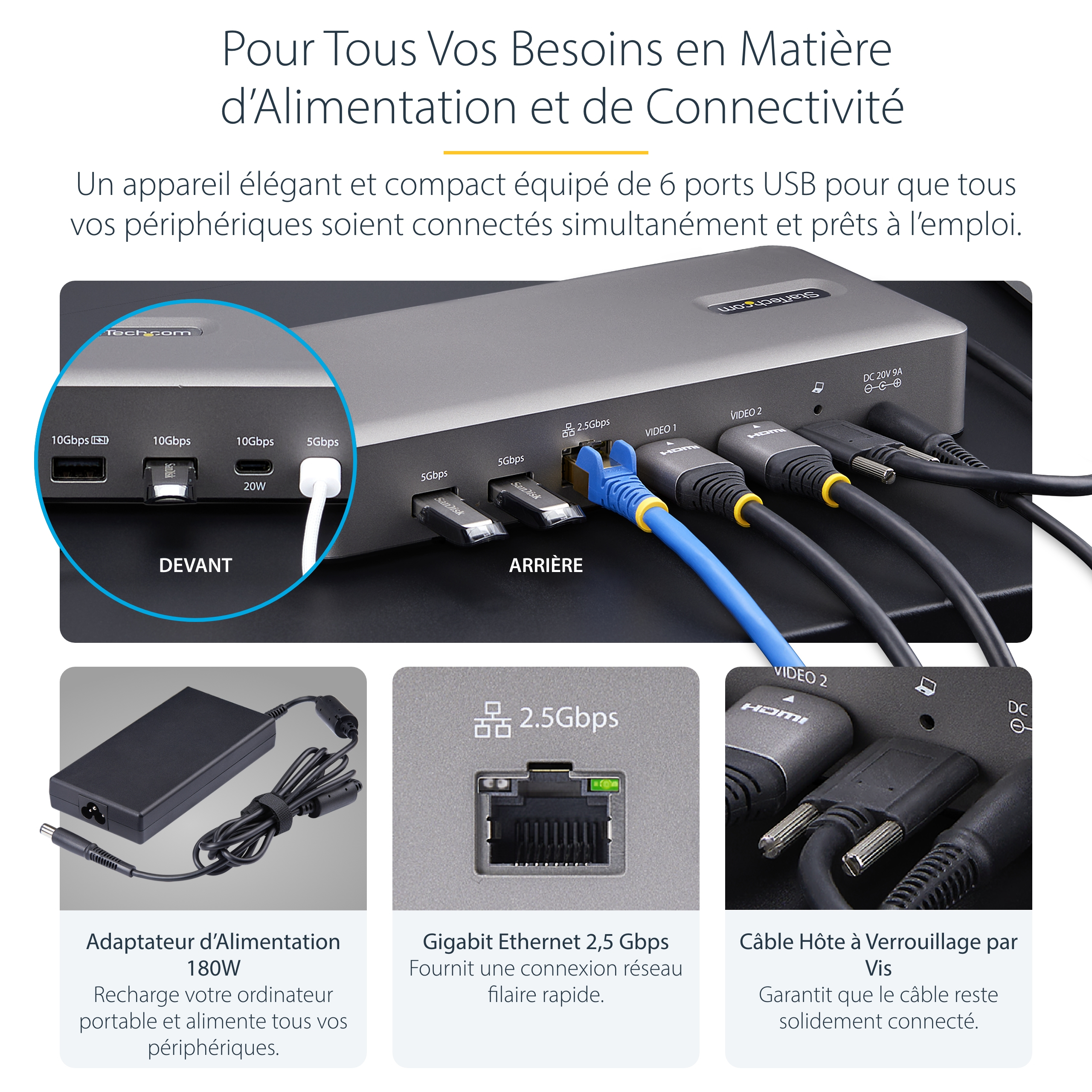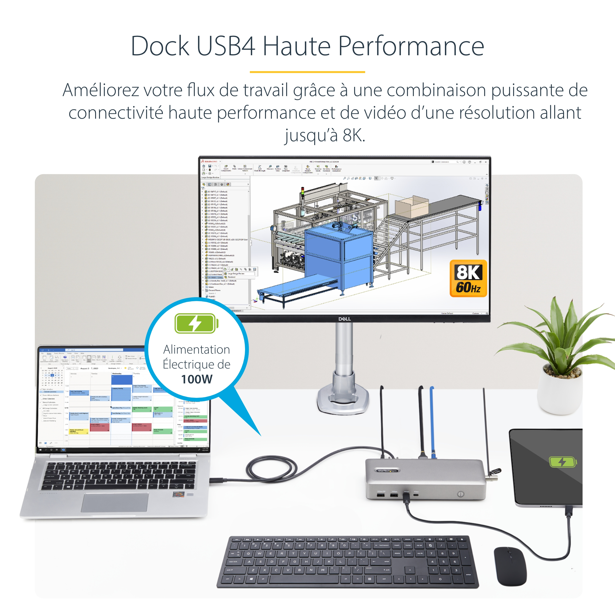 Transformez votre ordinateur portable USB4 en une station de travail haute résolution multi-écrans avec 6 ports USB, 2,5 Gigabit Ethernet et une chargeur pour ordinateur portable de 100 W