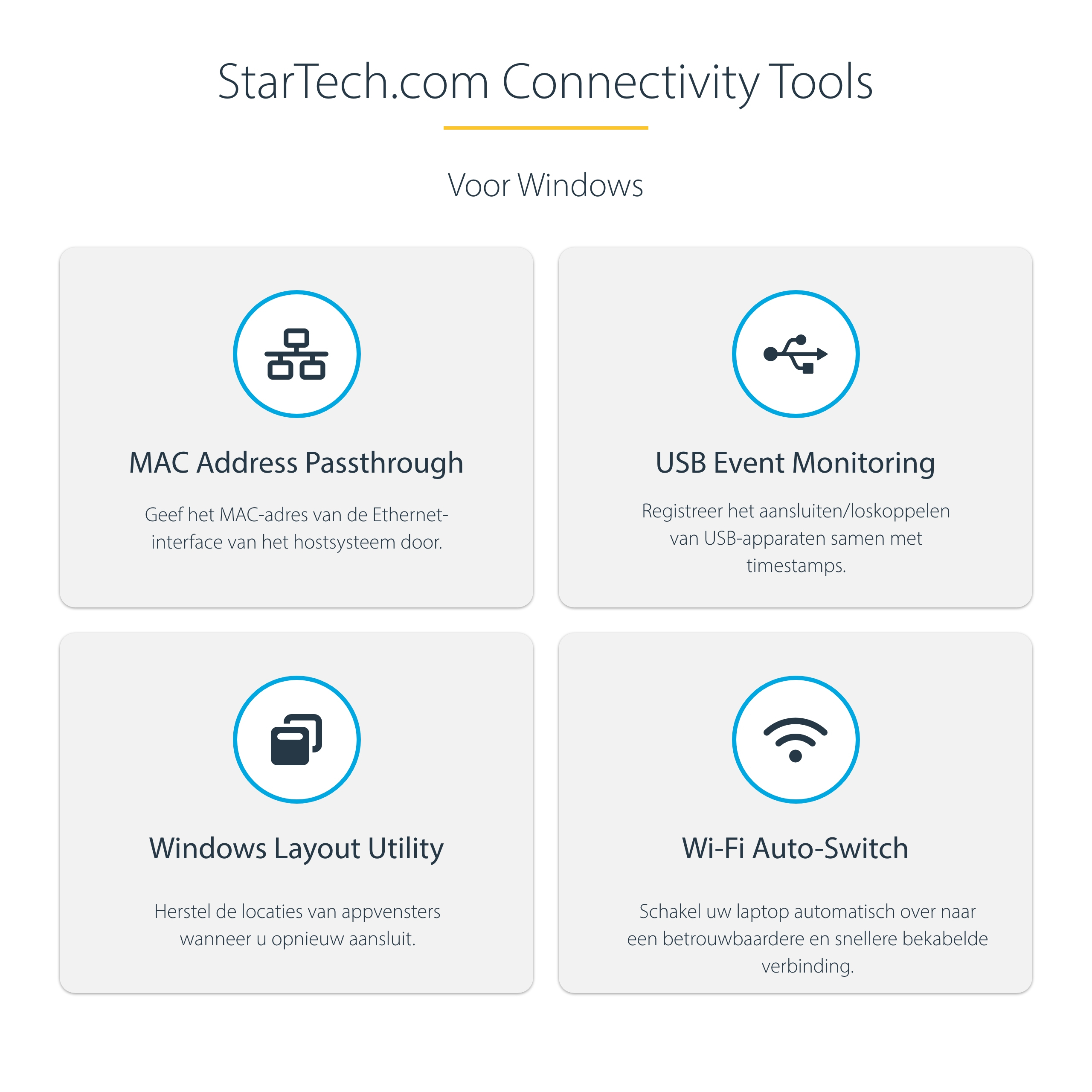 Développé pour améliorer les performances et la sécurité, Connectivity Tools est la seule suite logicielle sur le marché qui fonctionne avec une large gamme d'accessoires de connectivité informatique. Le logiciel comprend :