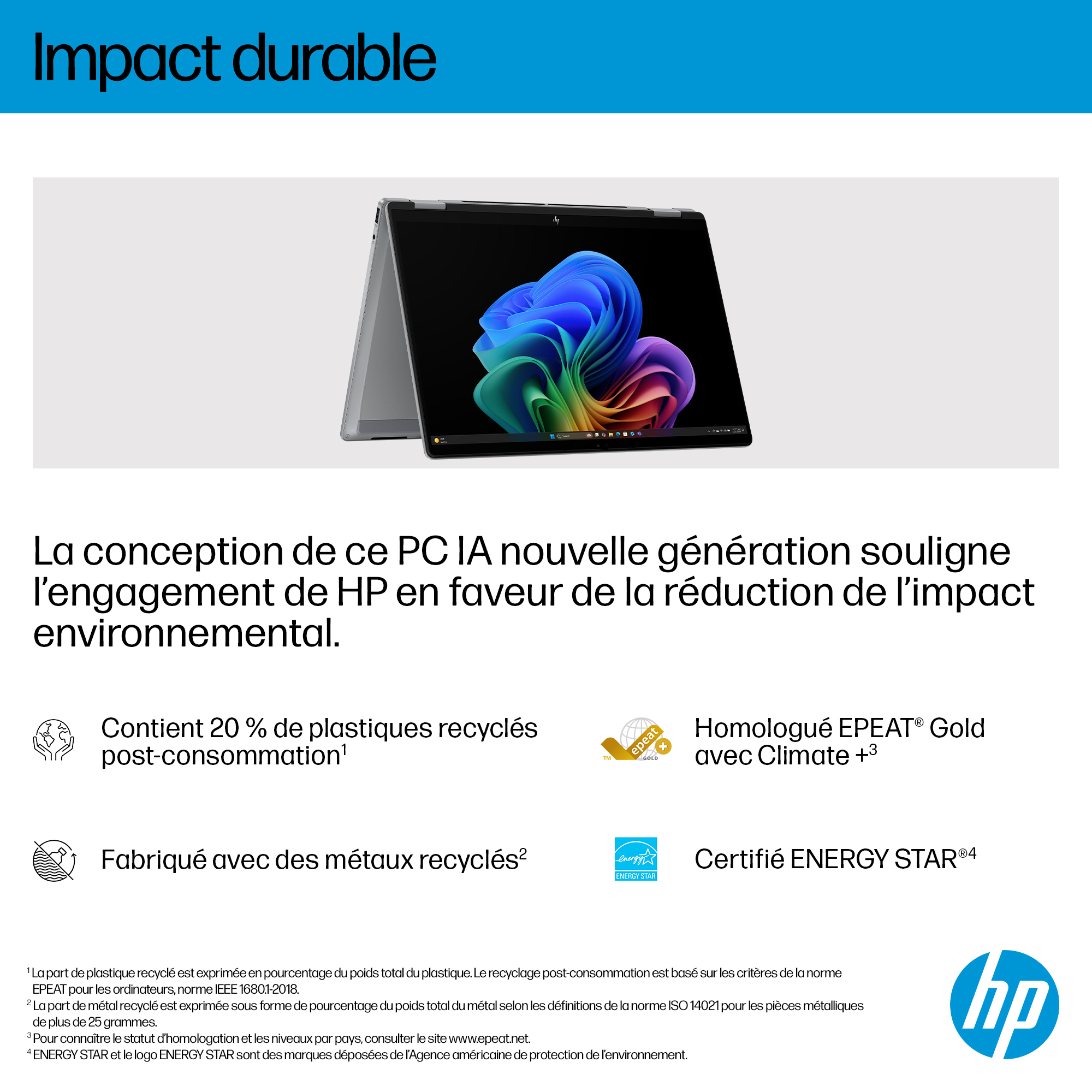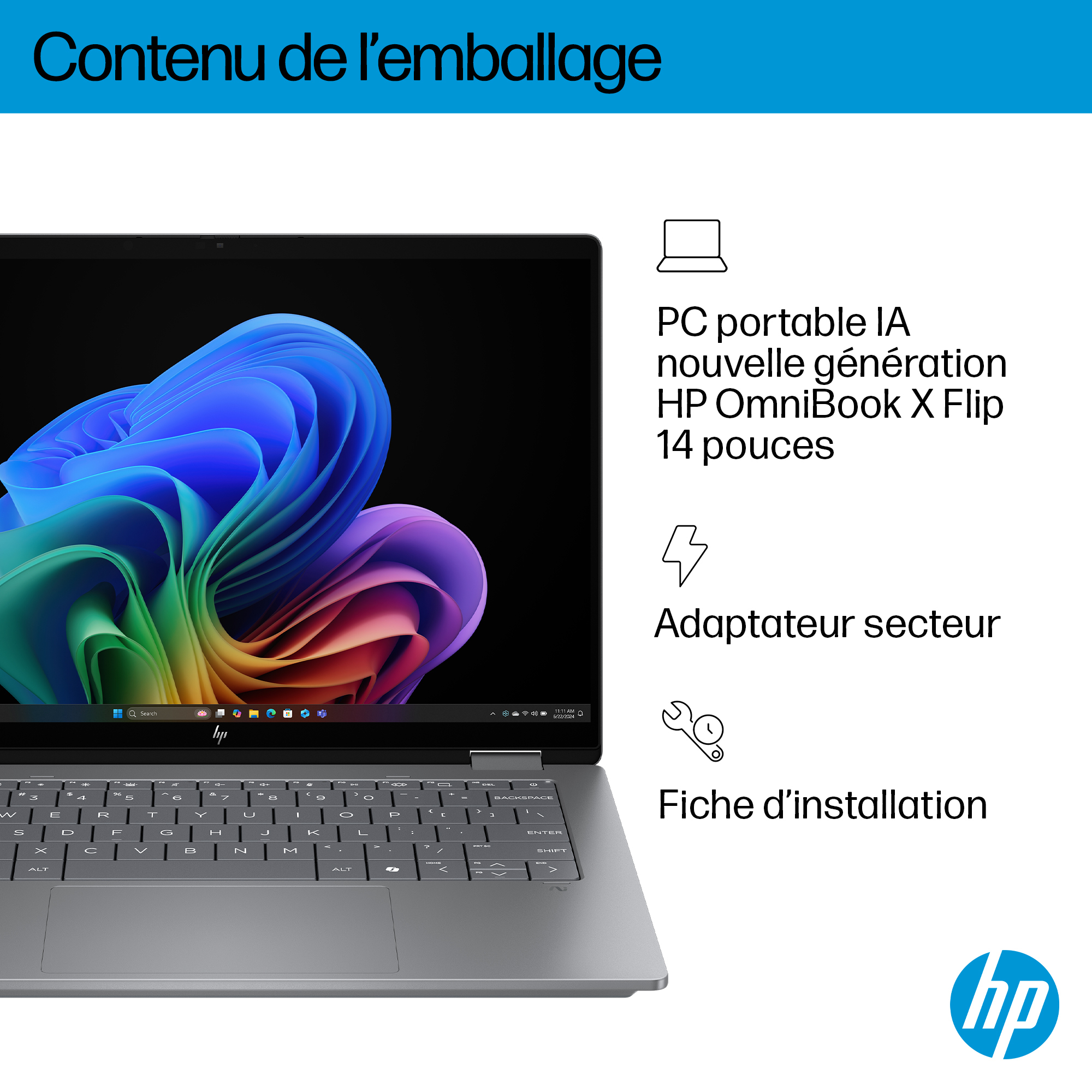 HP OmniBook X FlipNGAI 14-fk0772nb, AMD Ryzen AI 7, 2 GHz, 35,6 cm (14"), 2880 x 1800 pixels, 32 Go, 1 To