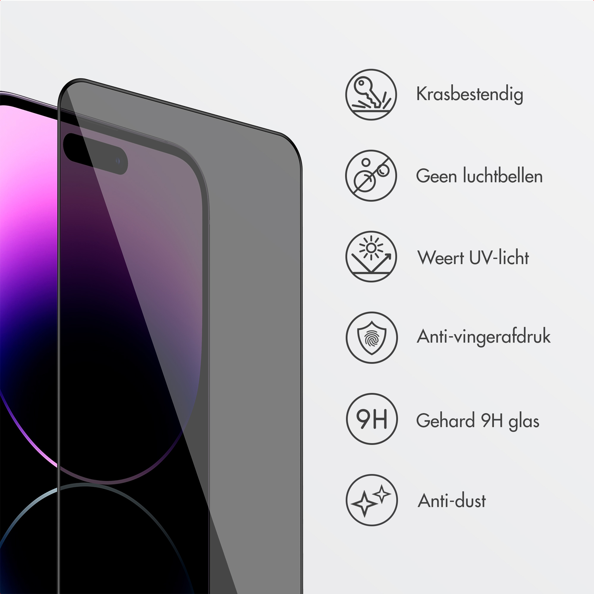 Accezz SH00089403. Compatibilité de marque: Apple, Compatibilité: Apple iPhone 14/Apple iPhone 16e/Apple iPhone 13 Pro/Apple iPhone 13, Fonctions de protection: Anti-bactérien, Résistant à la saleté, Résistant à la poussière, Résistant aux rayures. Fonction de filtrage de confidentialité, Matériel: Verre, Couleur du produit: Transparent. Quantité: 1 pièce(s)