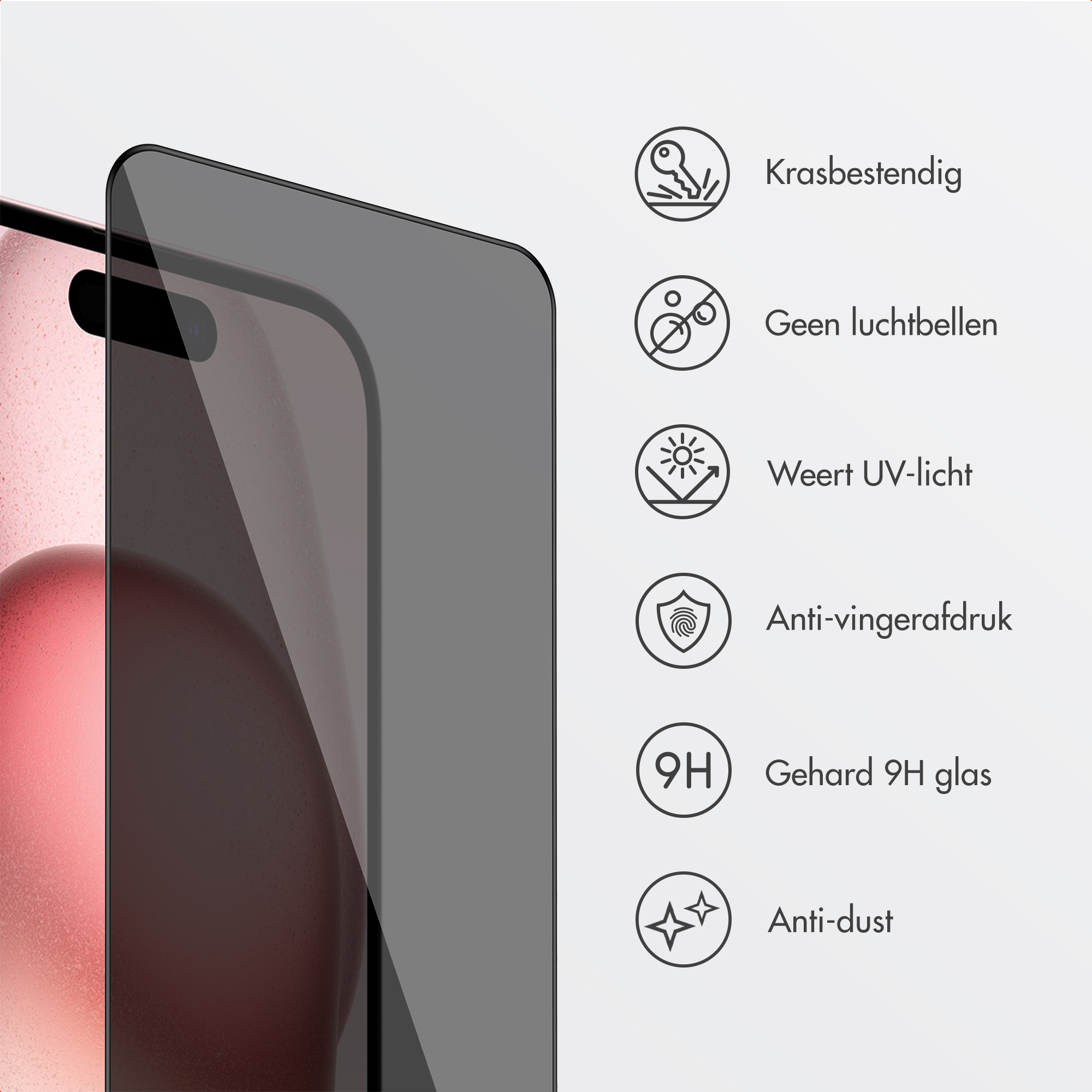 Accezz SH00089407. Compatibilité de marque: Apple, Compatibilité: Apple iPhone 15/Apple iPhone 16, Fonctions de protection: Anti-bactérien, Résistant à la saleté, Résistant à la poussière, Résistant aux rayures. Fonction de filtrage de confidentialité, Matériel: Verre, Couleur du produit: Transparent. Quantité: 1 pièce(s)