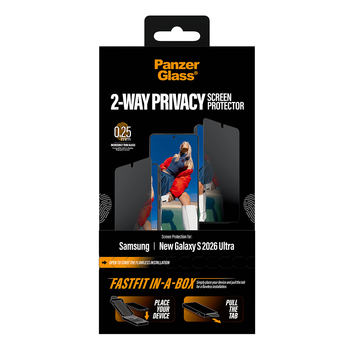 PanzerGlass ® 2-Way Privacy Screen Protector Samsung New Galaxy S 2026 Ultra | Ultra-Wide Fit w. FASTFIT IN-A-BOX, Samsung, Samsung - New Galaxy S2026 Ultra, Application à sec, Résistant aux rayures, Résistant aux chocs, Transparent, 1 pièce(s)
