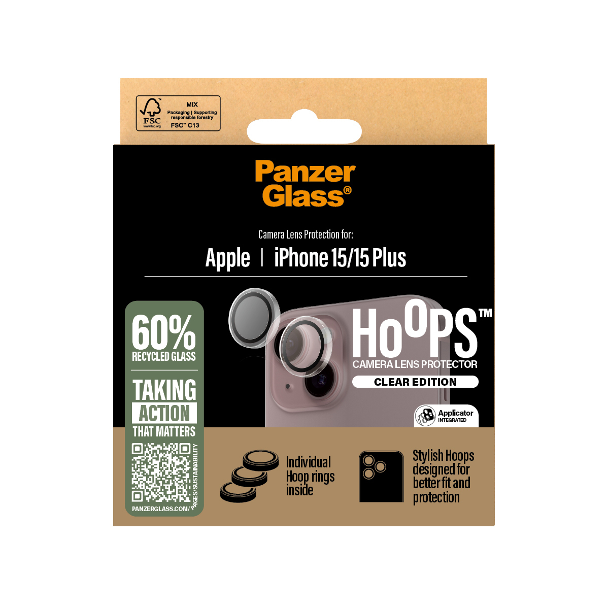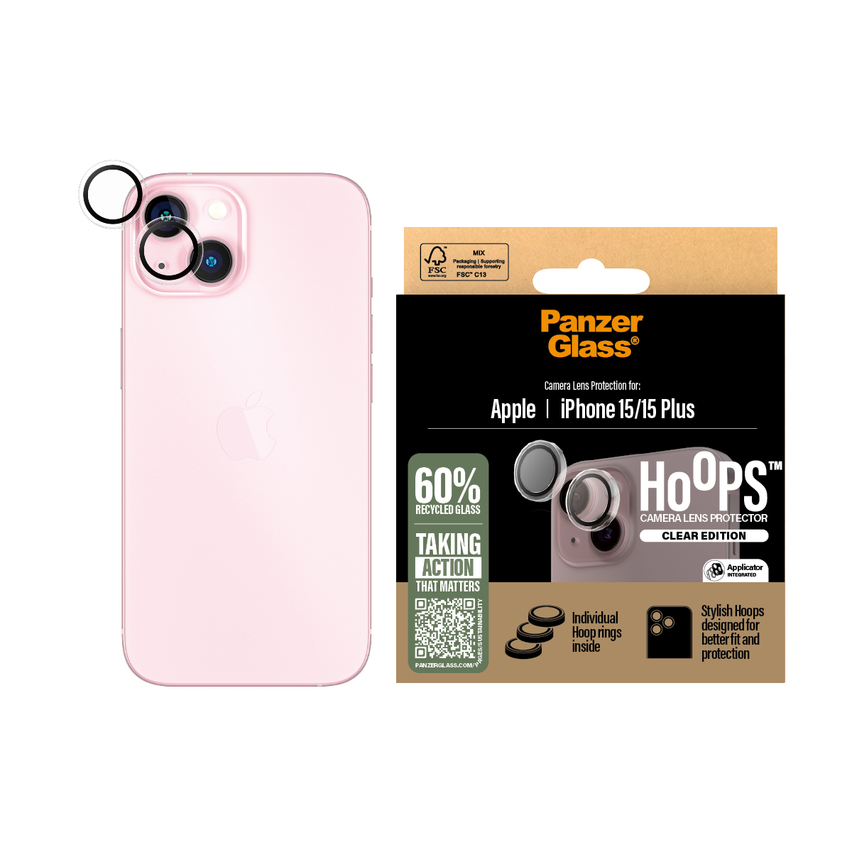 PanzerGlass ® Hoops® Camera Lens Protector Transparent iPhone 15 Plus | 15, Apple, Apple - iPhone 15, Apple - iPhone 15 Plus, Application à sec, Résistant aux rayures, Résistant aux chocs, Transparent, 1 pièce(s)