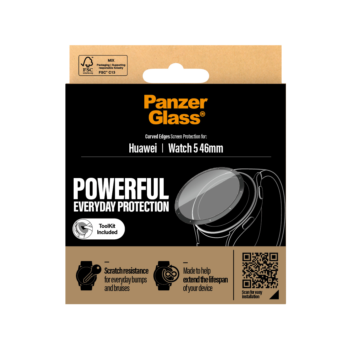 PanzerGlass ® Screen Protector w. Black Frame Huawei Watch 5 46mm, Huawei, Huawei - Watch 5 46mm, Application à sec, Résistant aux rayures, Résistant aux chocs, Transparent, 1 pièce(s)