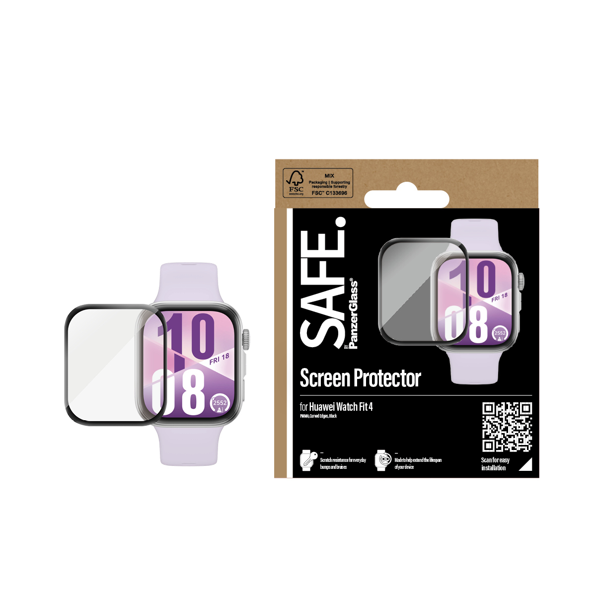 PanzerGlass SAFE. by ® Screen Protector w. Black Frame Huawei Watch Fit 4, Huawei, Huawei - Watch Fit 4, Application à sec, Résistant aux rayures, Résistant aux chocs, Transparent, 1 pièce(s)