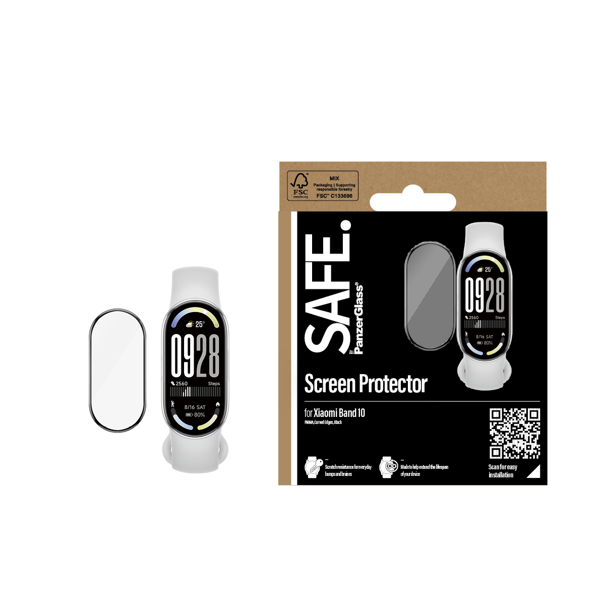 PanzerGlass SAFE. by ® Screen Protector w. Black Frame Xiaomi Band 10, Xiaomi, Xiaomi - Band 10, Application à sec, Résistant aux rayures, Résistant aux chocs, Transparent, 1 pièce(s)