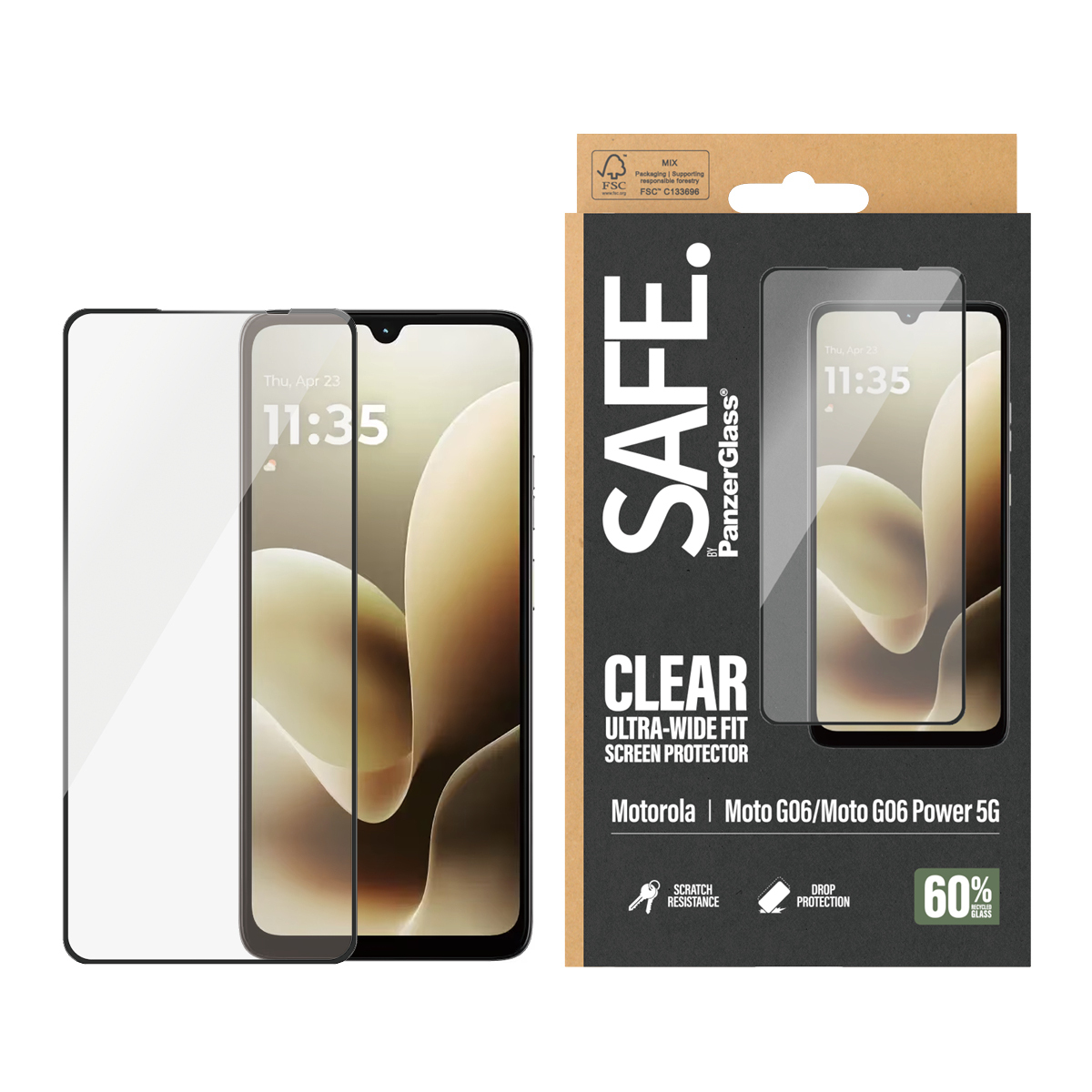 PanzerGlass SAFE. by ® Screen Protector Motorola Moto G06 | Moto G06 POWER | Ultra-Wide Fit, Motorola, Motorola - Moto G06 4G, Motorola - Moto G06 Power 4G, Application à sec, Résistant aux rayures, Résistant aux chocs, Transparent, 1 pièce(s)